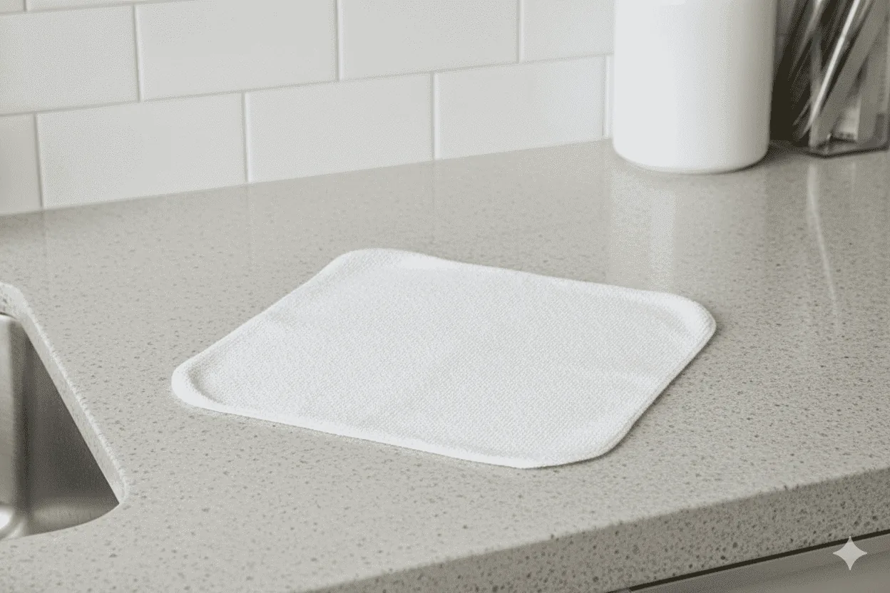 Paño de cocina con alta absorción, resistente y de secado rápido.