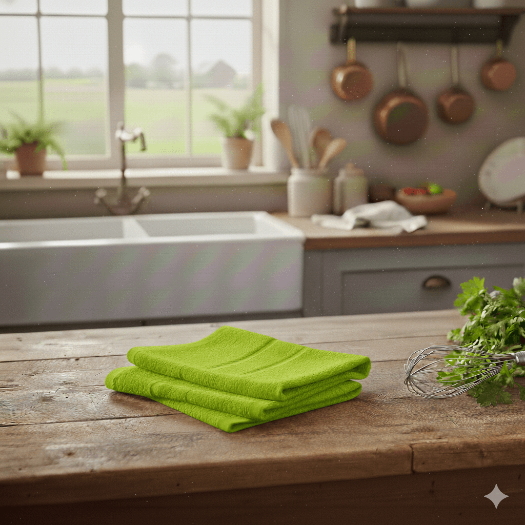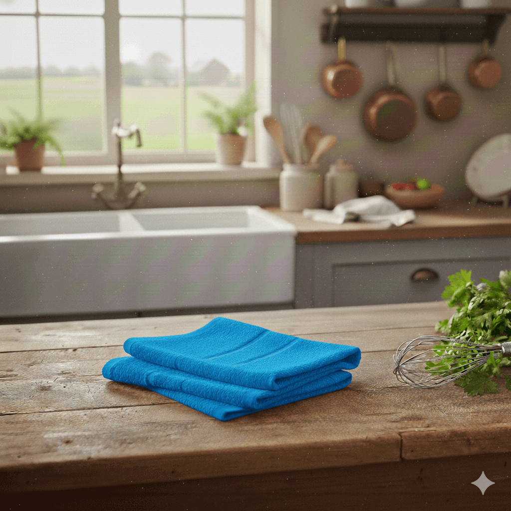 Paño de cocina con alta absorción, resistente y de secado rápido.
