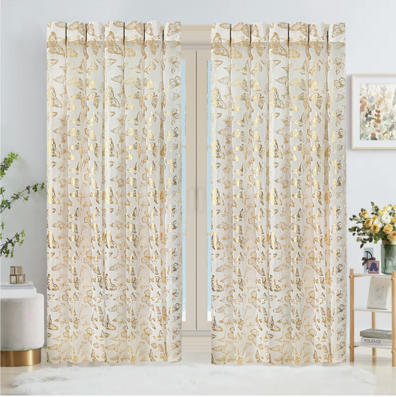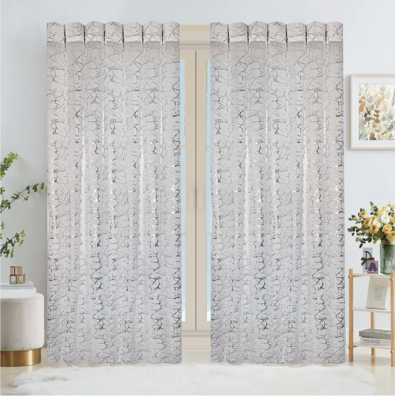 Juego de cortinas-material: poliéster 2 paneles, cuenta con sistema de aro metálico.