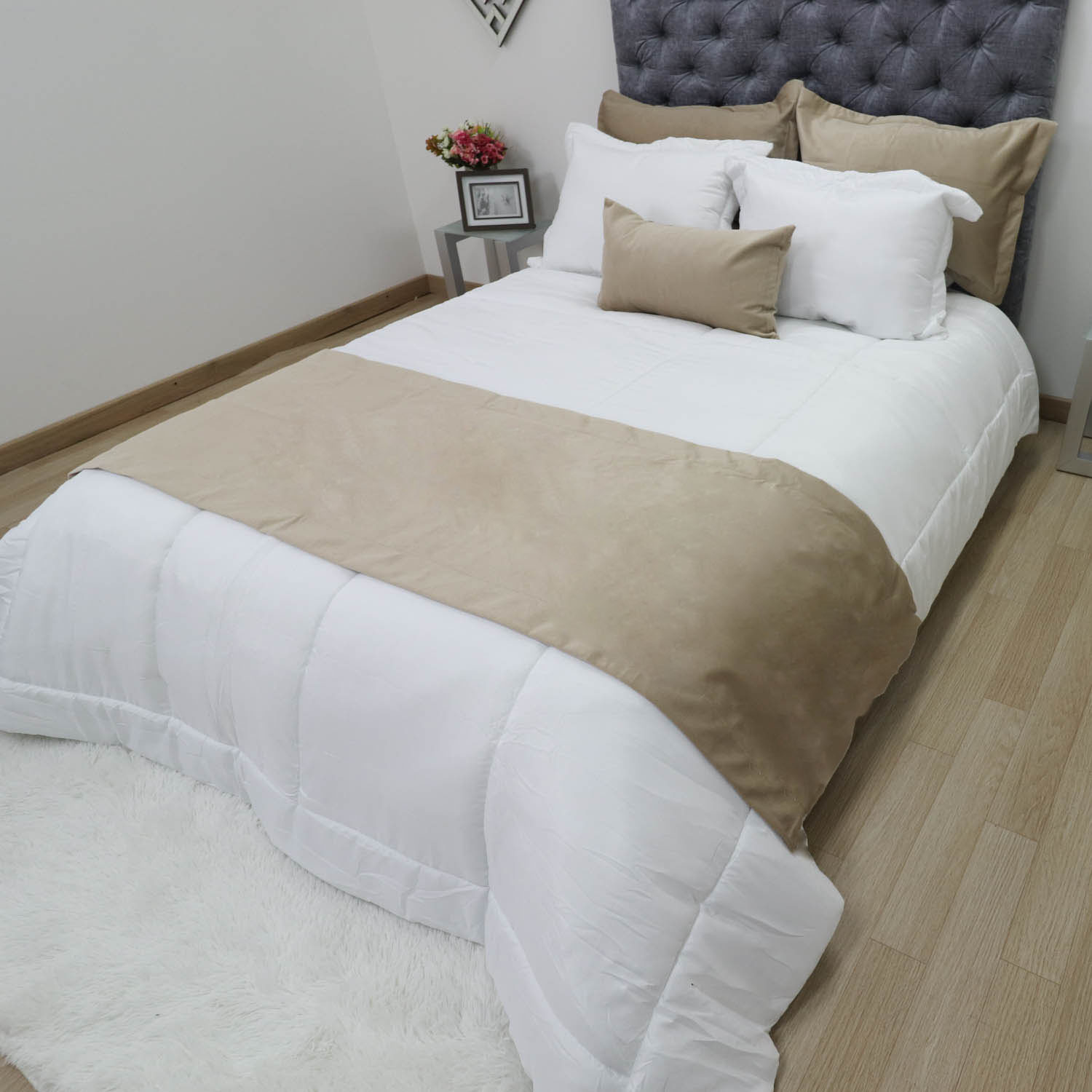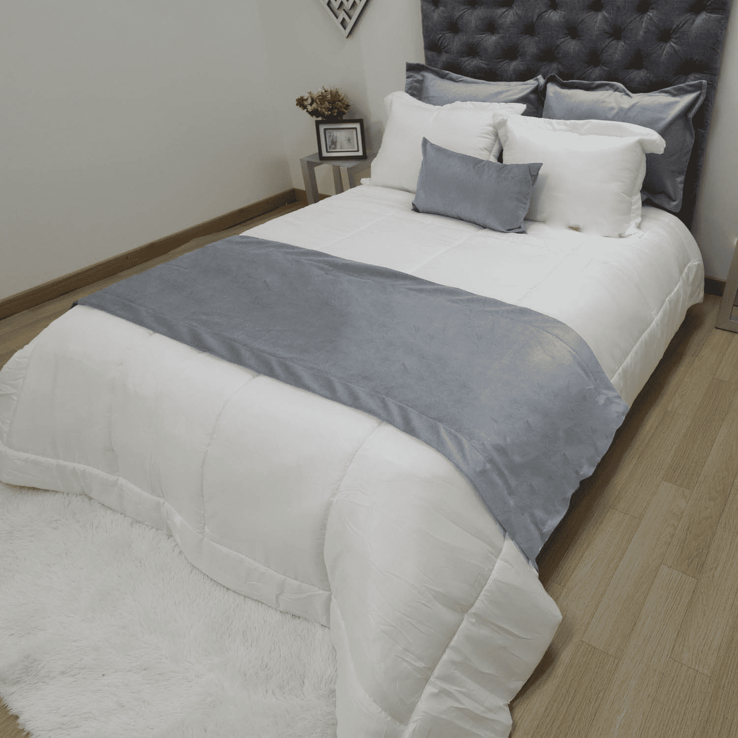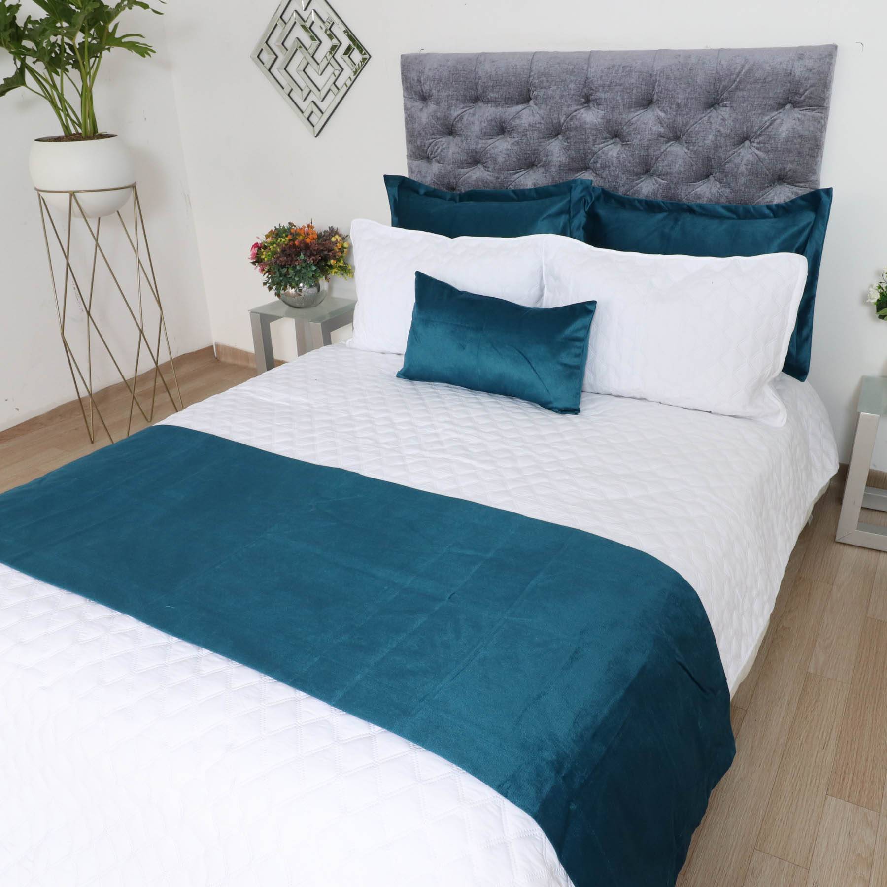 Renueva tu cama con estilo y color gracias a la Pashmina Lucca, un juego de 4 piezas que incluye pie de cama (220x60 cm), 2 fundas para almohadas (50x70 cm) y 1 funda para cojín riñonera (35x60 cm). Disponible en tonos modernos como palo rosa, verde, azul turquesa, rojo, azul petróleo, gris, taupe y negro. Suave, elegante y perfecta para dar un toque decorativo a tu habitación.