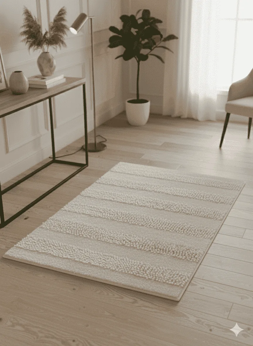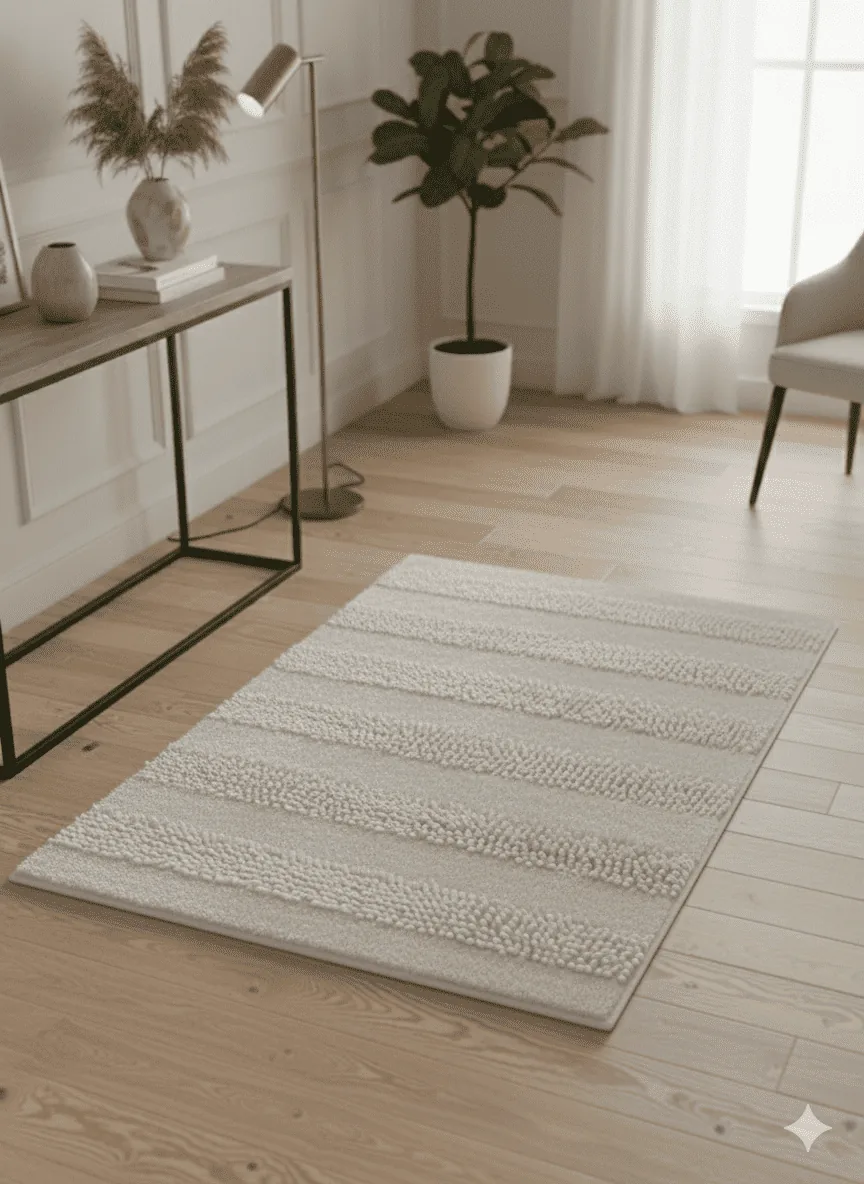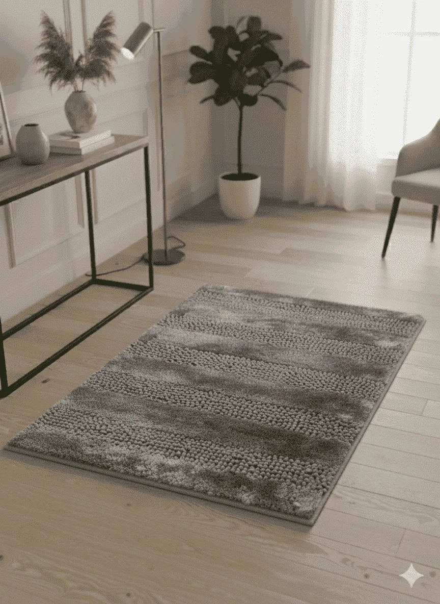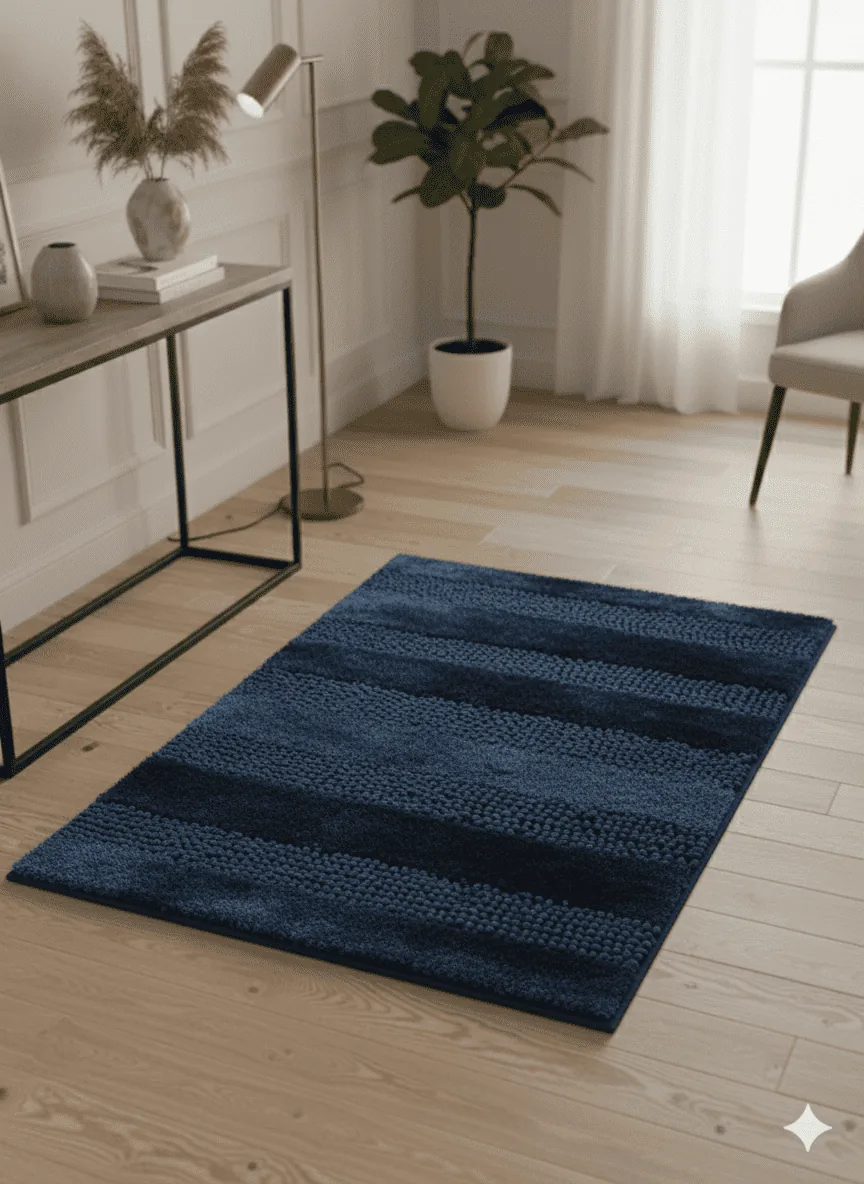 Alfombra con base antideslizante y textil de larga duración.