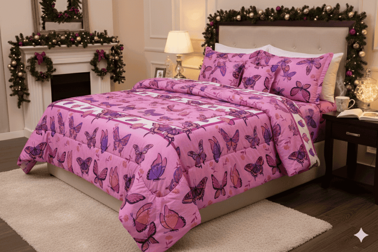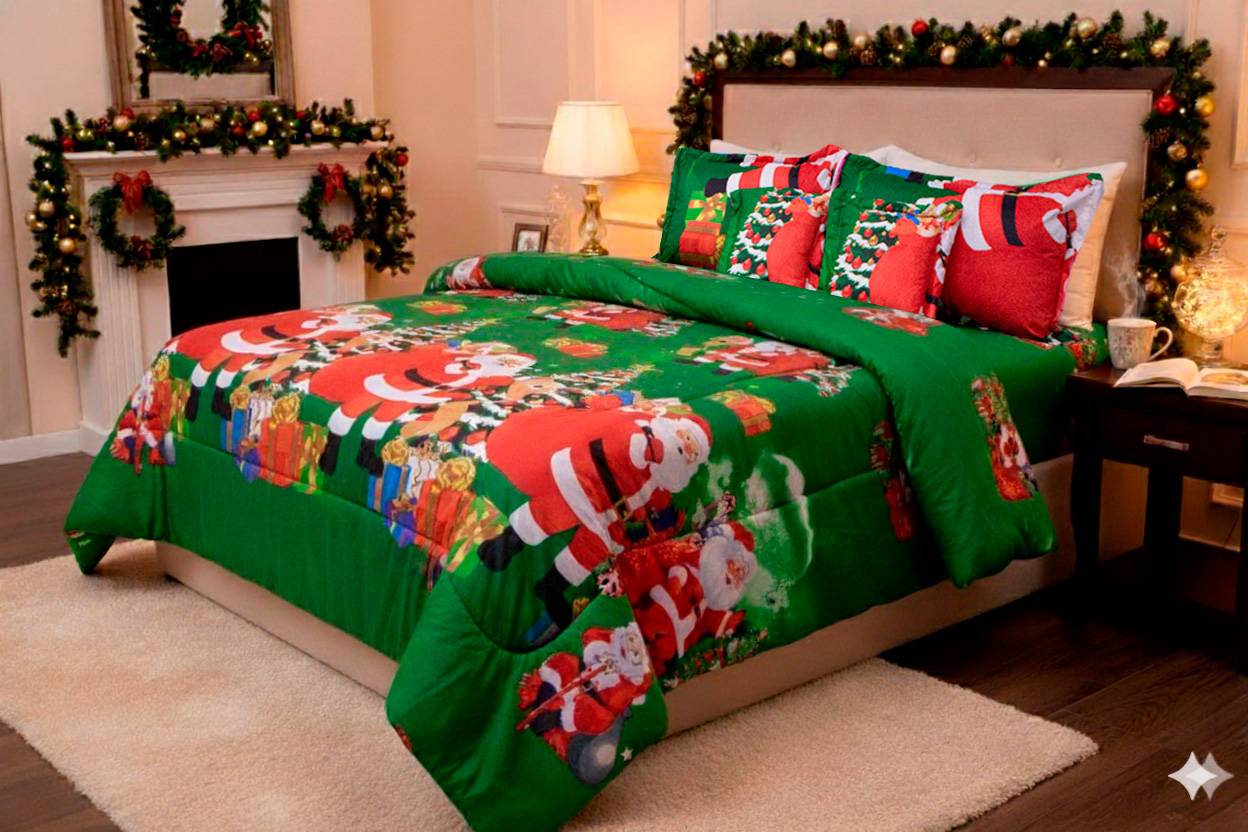 Tendido de Cama Andú Navideño Doble – Para camas de 1,40 m, ideal para decorar tu dormitorio en temporada festiva. Elaborado en 100% poliéster, incluye 1 tendido, 2 fundas para almohadas y 2 cojines auxiliares. Diseño navideño de alta definición que aporta calidez, estilo y un toque acogedor a tu habitación. Fácil de cuidar y combinar con tu decoración decembrina.