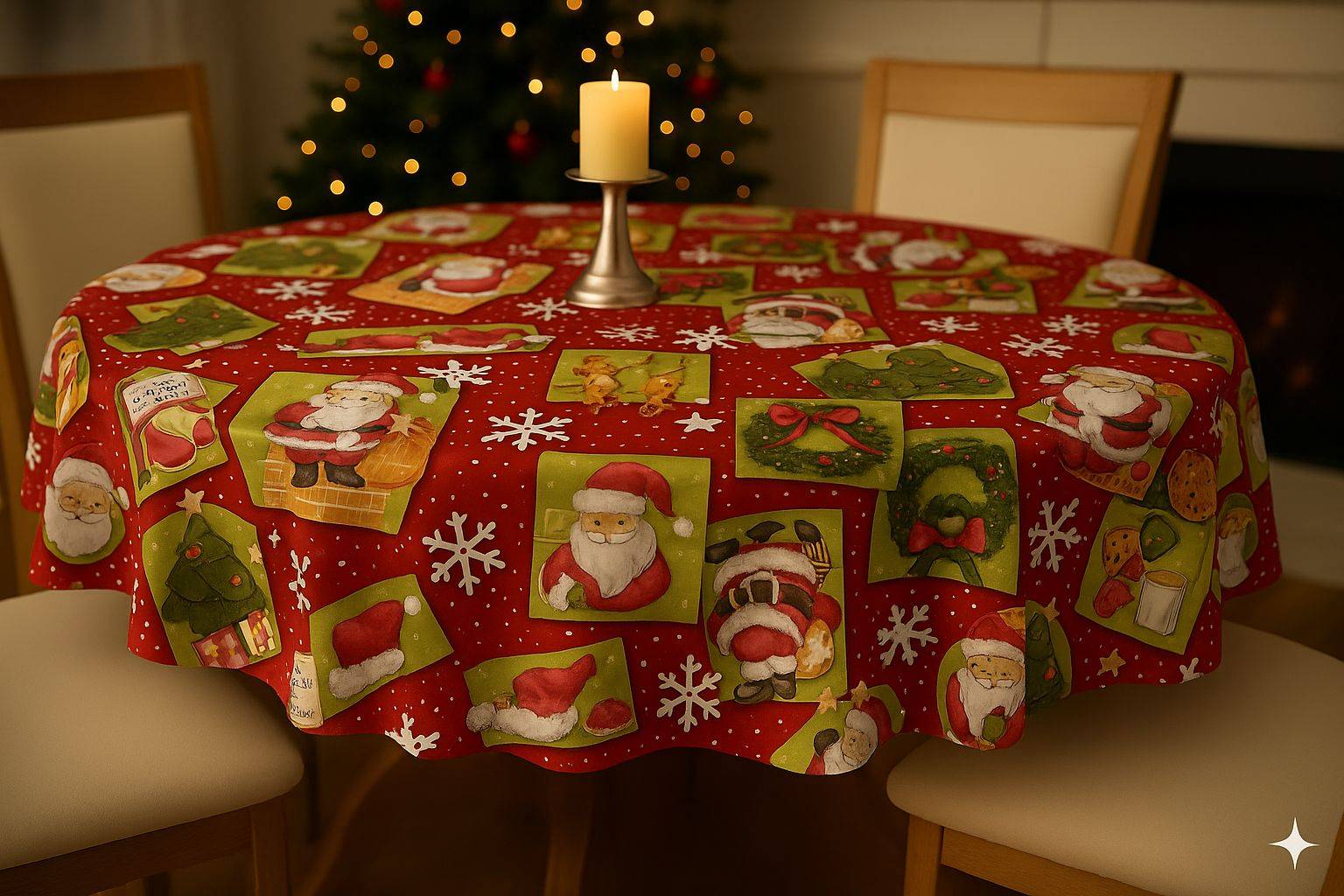 Mantel Navideño Redondo 180 cm – Ideal para darle un toque festivo a tu mesa. Elaborado en poliéster, con diseño navideño de alta definición que aporta calidez y elegancia a tus espacios. Fácil de limpiar y combinar, perfecto para celebraciones y reuniones decembrinas.