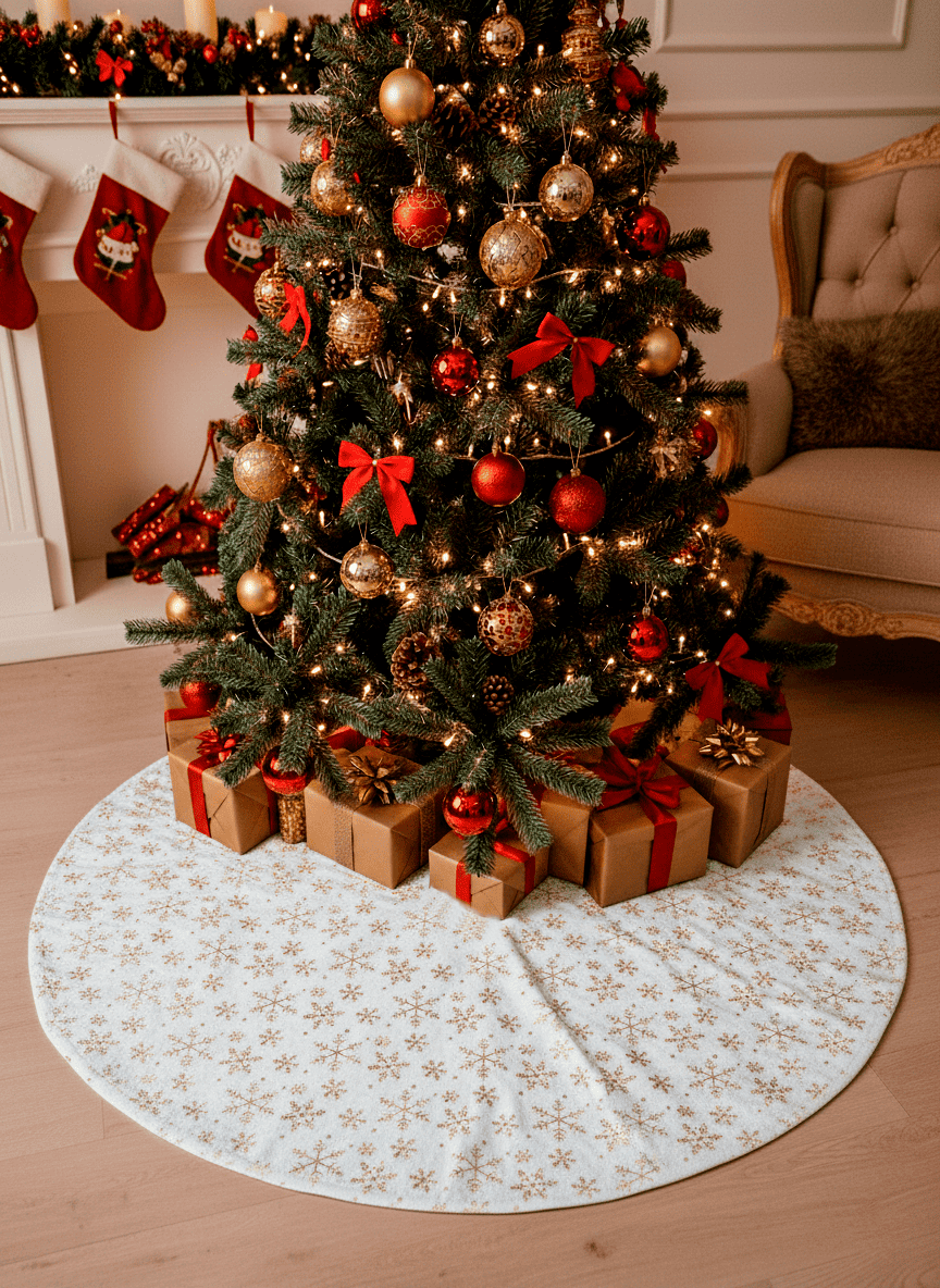 Pie de Árbol Navideño Lux – 1,5 metros de diámetro, ideal para vestir tu árbol con un toque festivo y elegante.