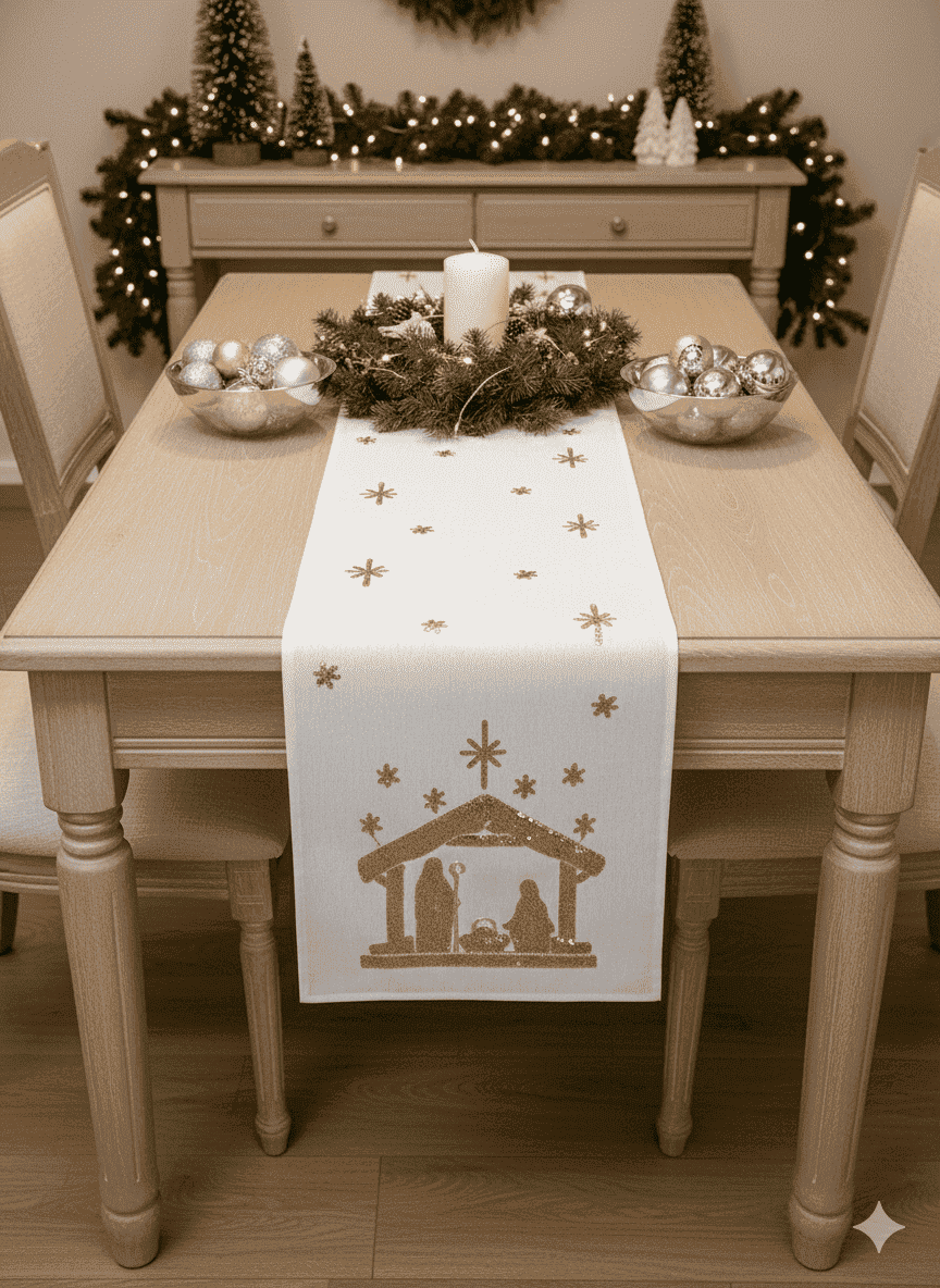 El Camino de Mesa Navideño Belén aporta un aire tradicional y festivo a tu comedor. Su diseño con motivos navideños resalta la calidez de la temporada, creando una mesa elegante y acogedora. Elaborado en poliéster de alta calidad, mide 40 cm x 150 cm, ideal para dar un toque navideño lleno de estilo y encanto a tus celebraciones.