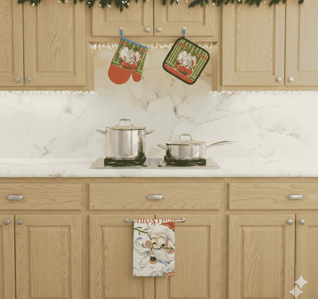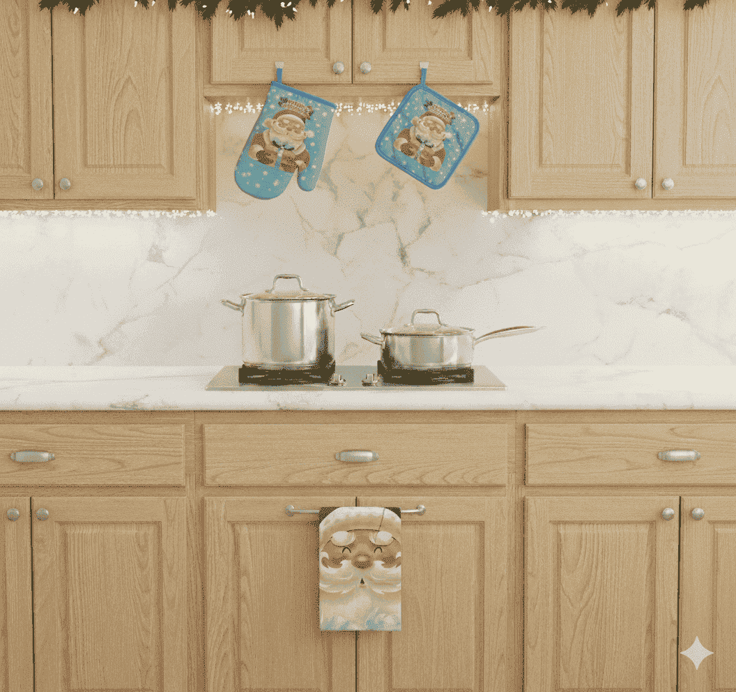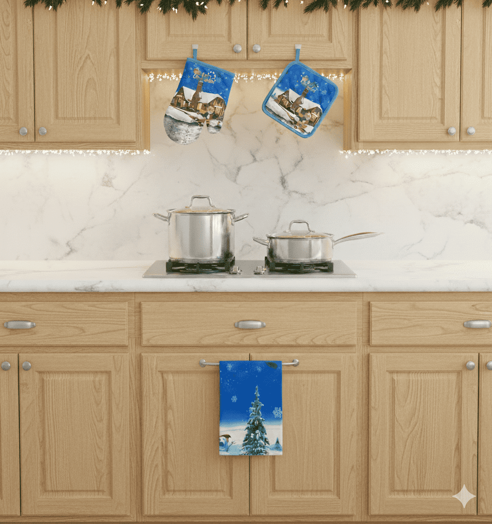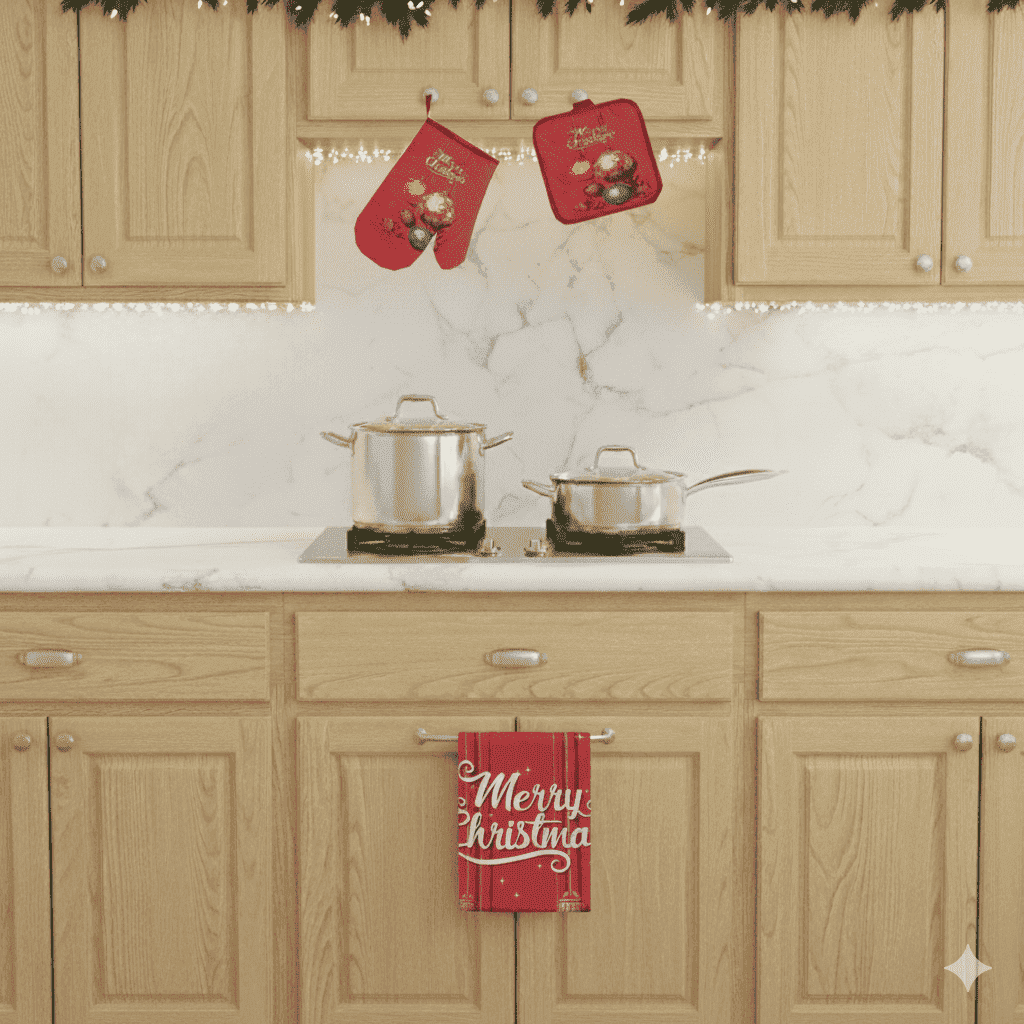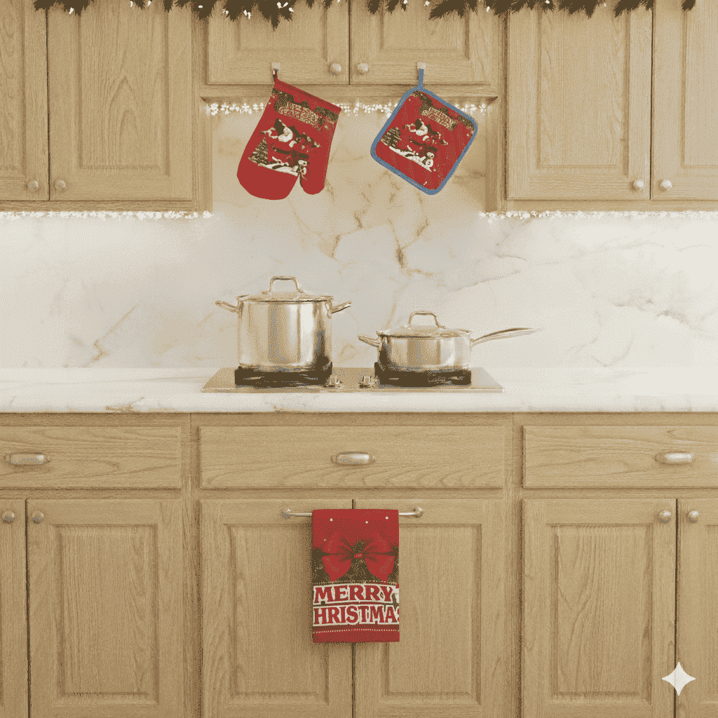 Set Navideño de Cocina – 3 Piezas Dale un toque festivo a tu cocina con este encantador Set Navideño, perfecto para la temporada. Elaborado en poliéster de alta calidad, combina funcionalidad y estilo para acompañarte en tus preparaciones navideñas. Incluye: 1 guante térmico de 17 cm x 25 cm 1 sujetador/portaplatos de 17 cm x 17 cm 1 limpión de 40 cm x 60 cm Su diseño temático navideño aporta calidez y alegría al espacio, mientras que sus materiales resistentes garantizan comodidad y seguridad al cocinar. Ideal para uso diario o como un detalle perfecto para regalar.