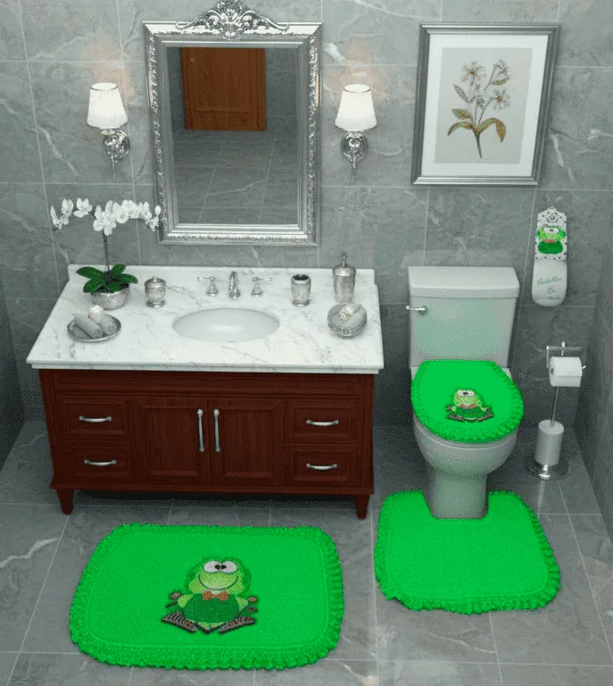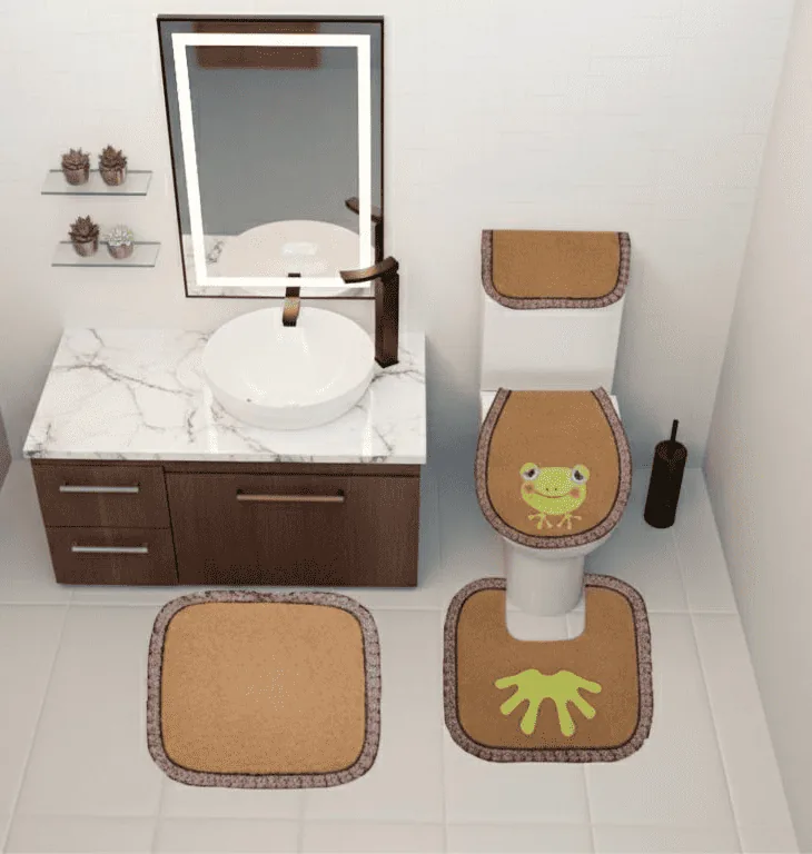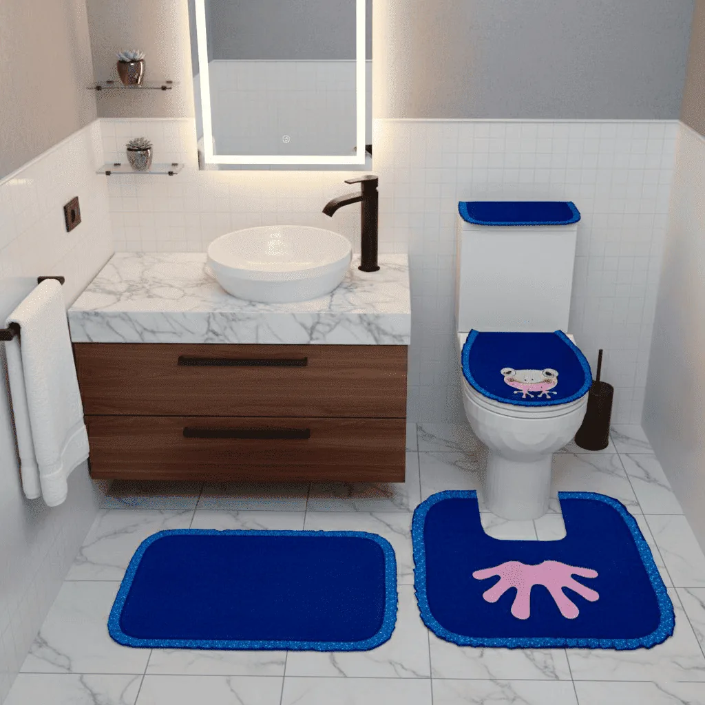 Juego de baño por 7 piezas en tela toalla incluye: forros tapa cisterna, tapa bizcocho, tapete entrada, tapete taza,organizador de papeforro pnasta.