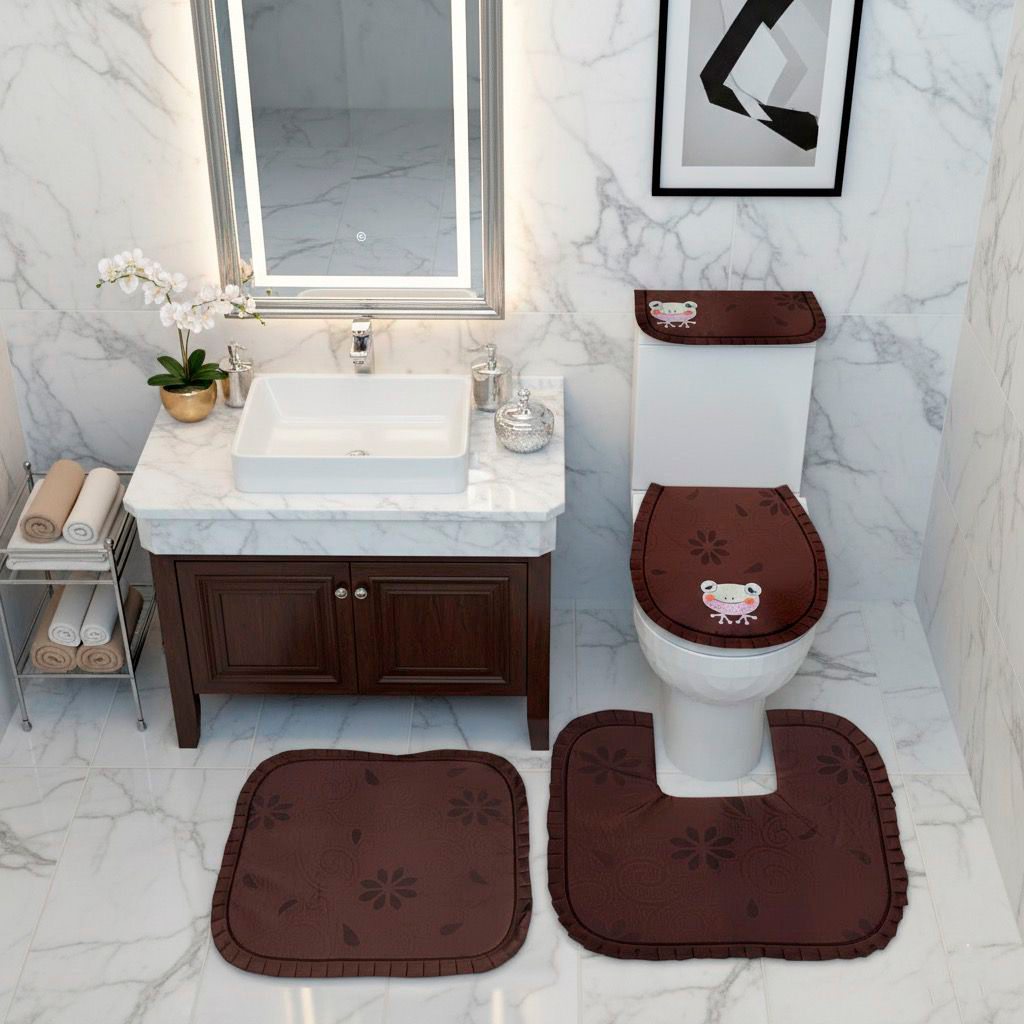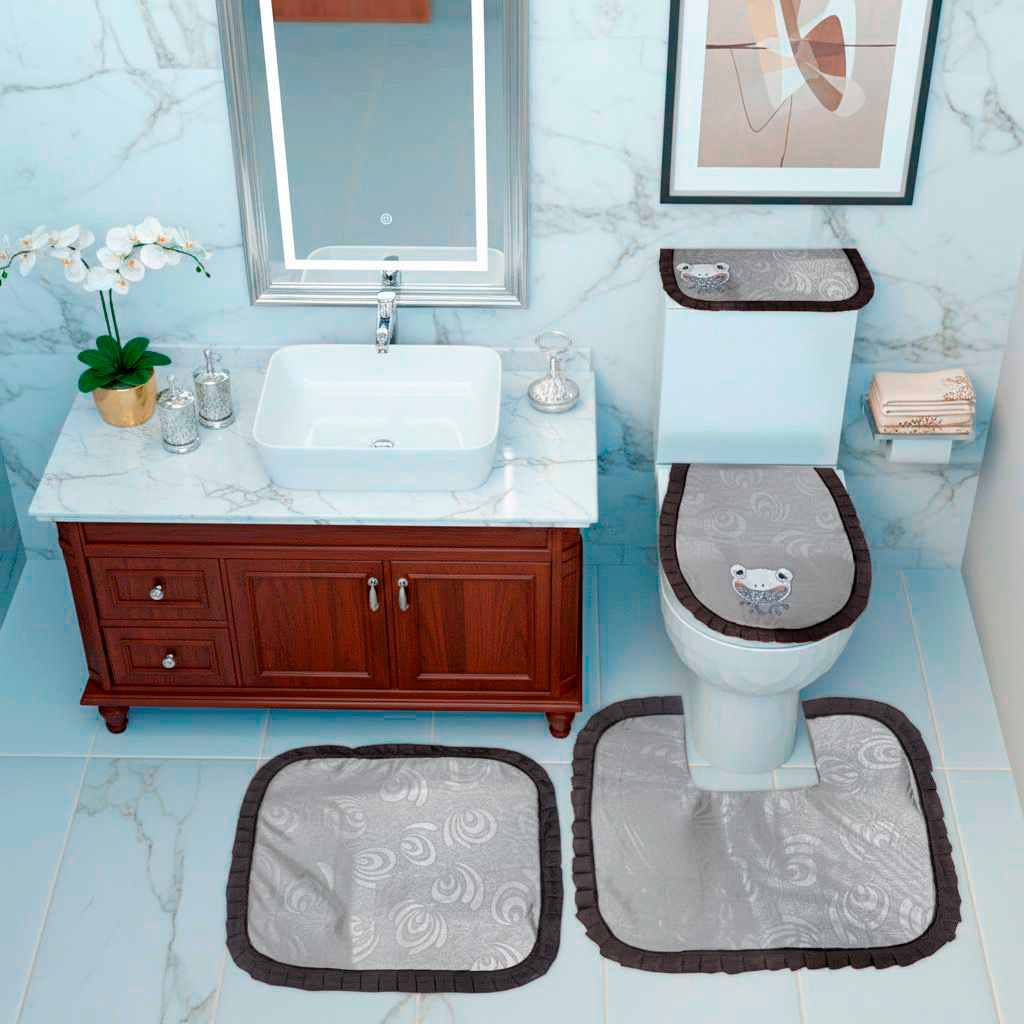 Juego de baño por 4 piezas eincluye: forros tapa cisterna, forro tapa bizcocho, tapete entrada Y tapete taza.
