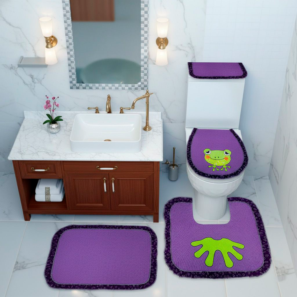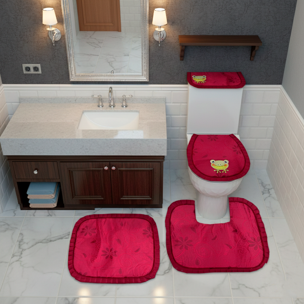 Juego de baño por 4 piezas en tela toalla incluye: forros tapa cisterna, forro tapa bizcocho, tapete entrada.