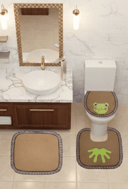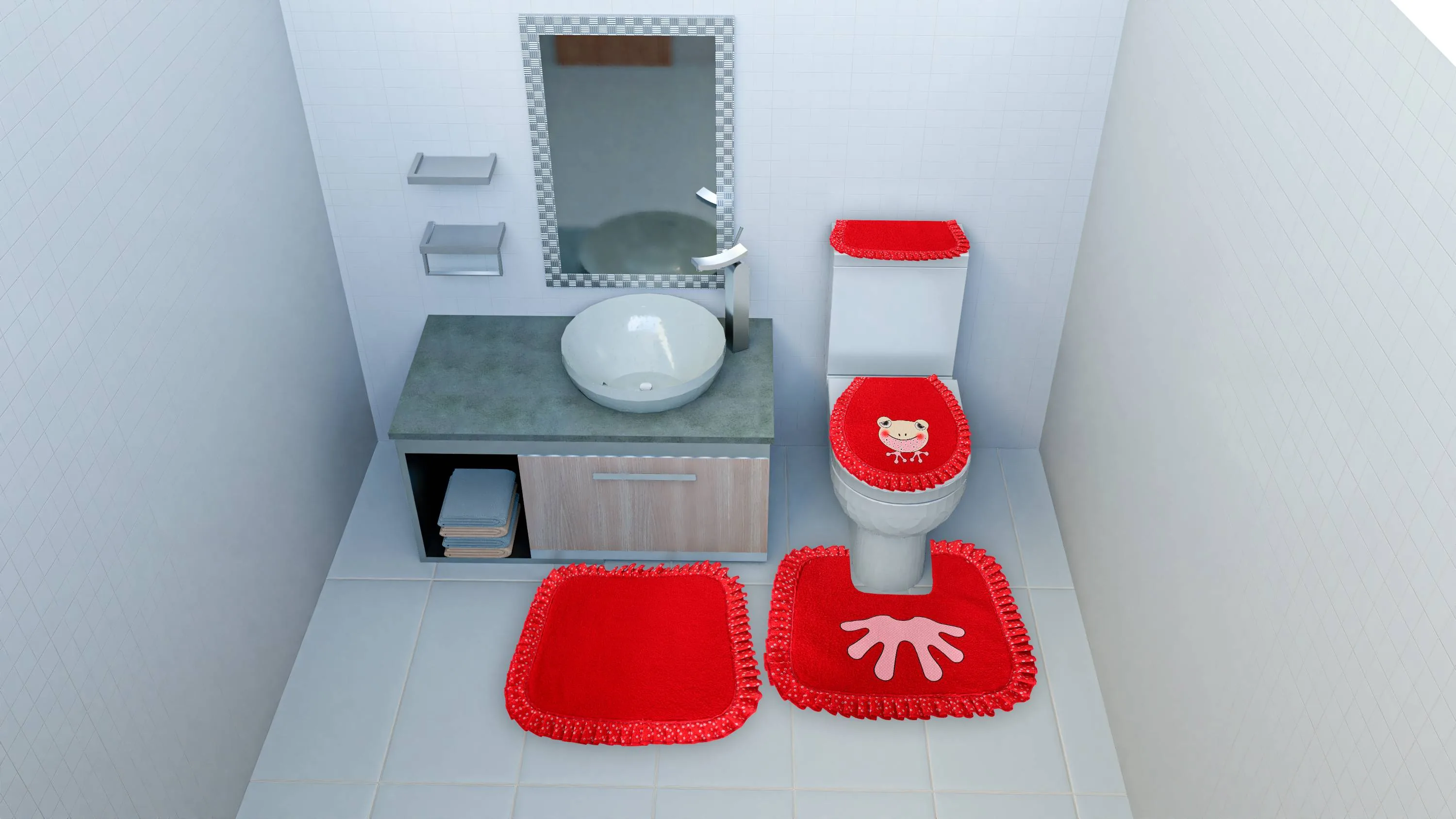 Juego de baño por 4 piezas en tela toalla incluye: forros tapa cisterna, forro tapa bizcocho, tapete entrada.