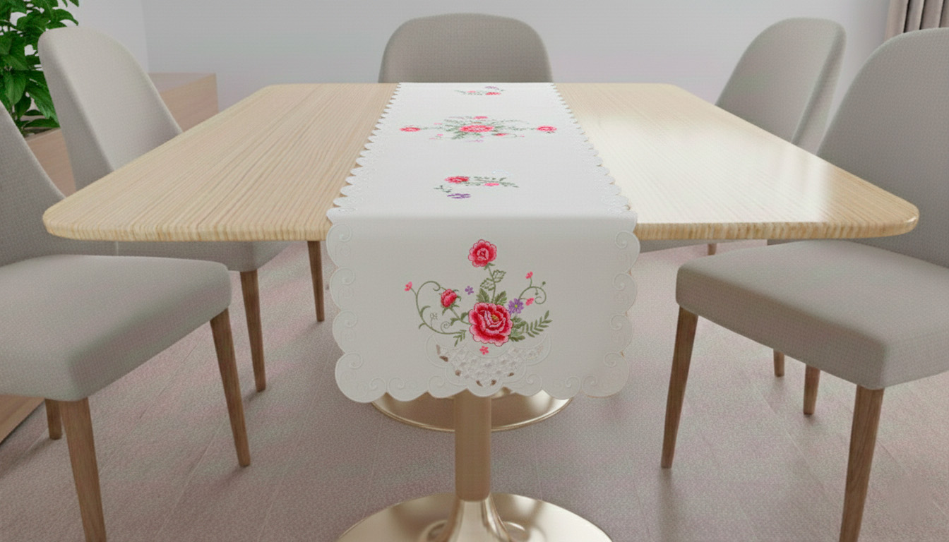 Dale un toque especial a tu hogar con camino de mesa bordado 33cmx180cm, diseño funcional y moderno.