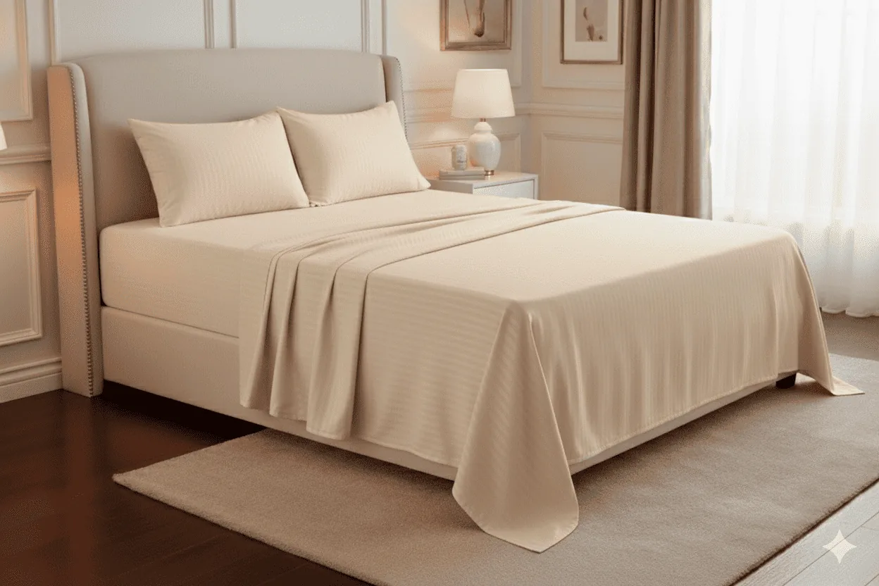 Lencería de cama fabricada con materiales premium, suaves al tacto y resistentes al uso frecuente.