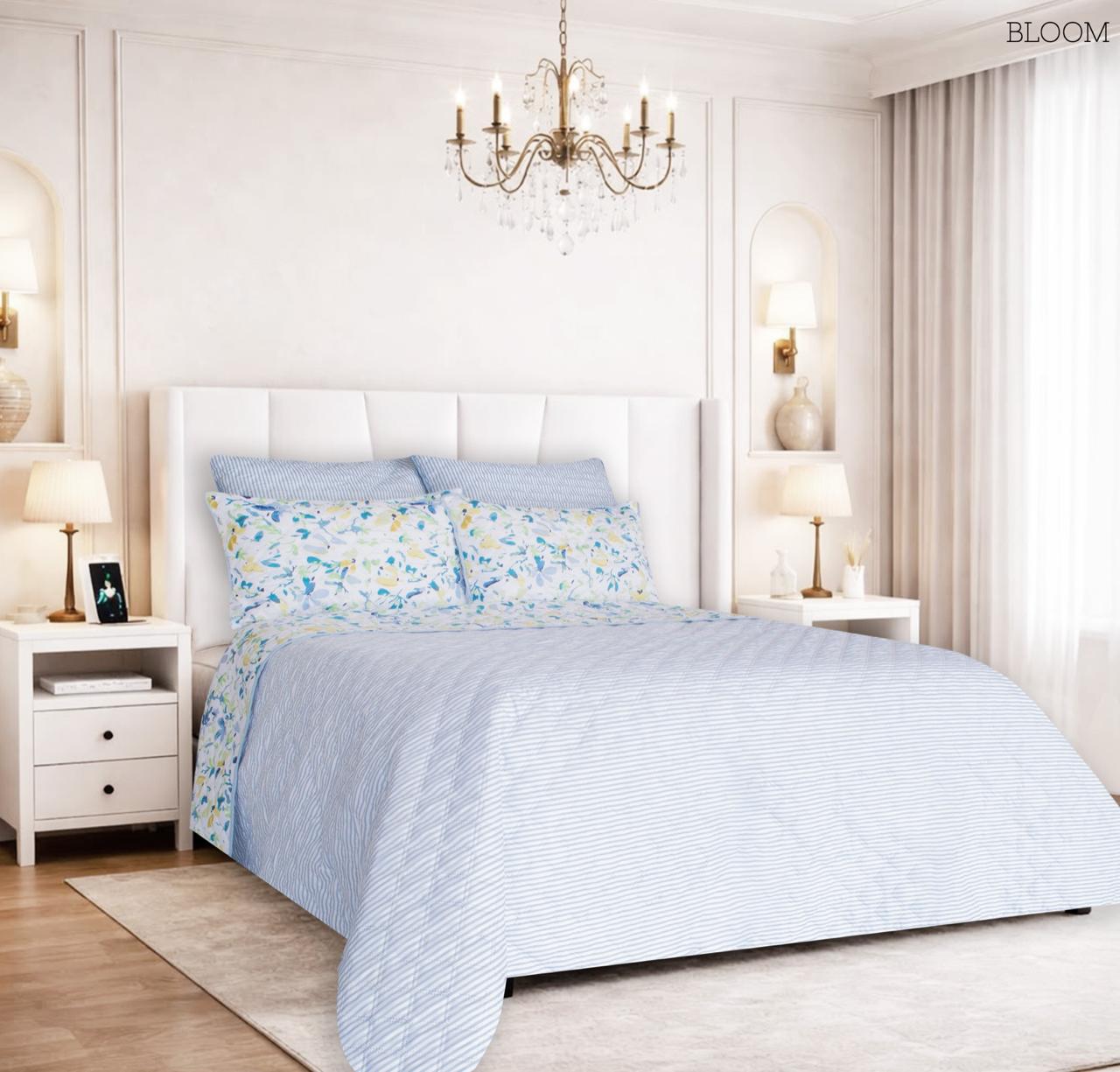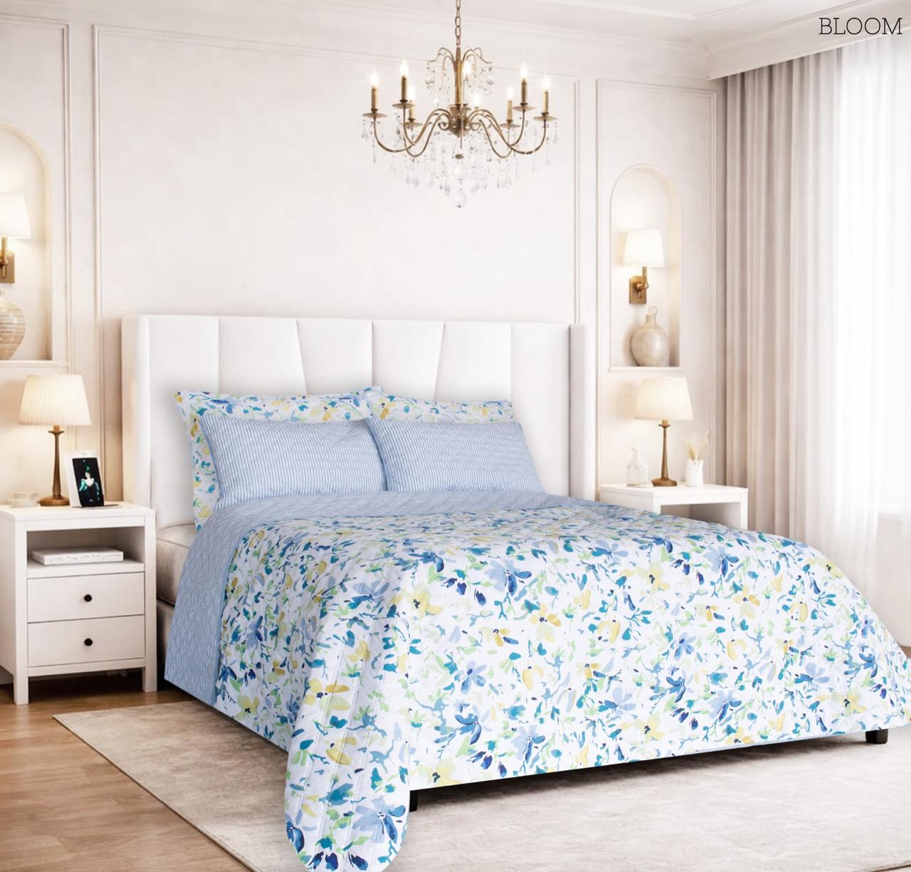 Lencería de cama fabricada con materiales premium, suaves al tacto y resistentes al uso frecuente.
