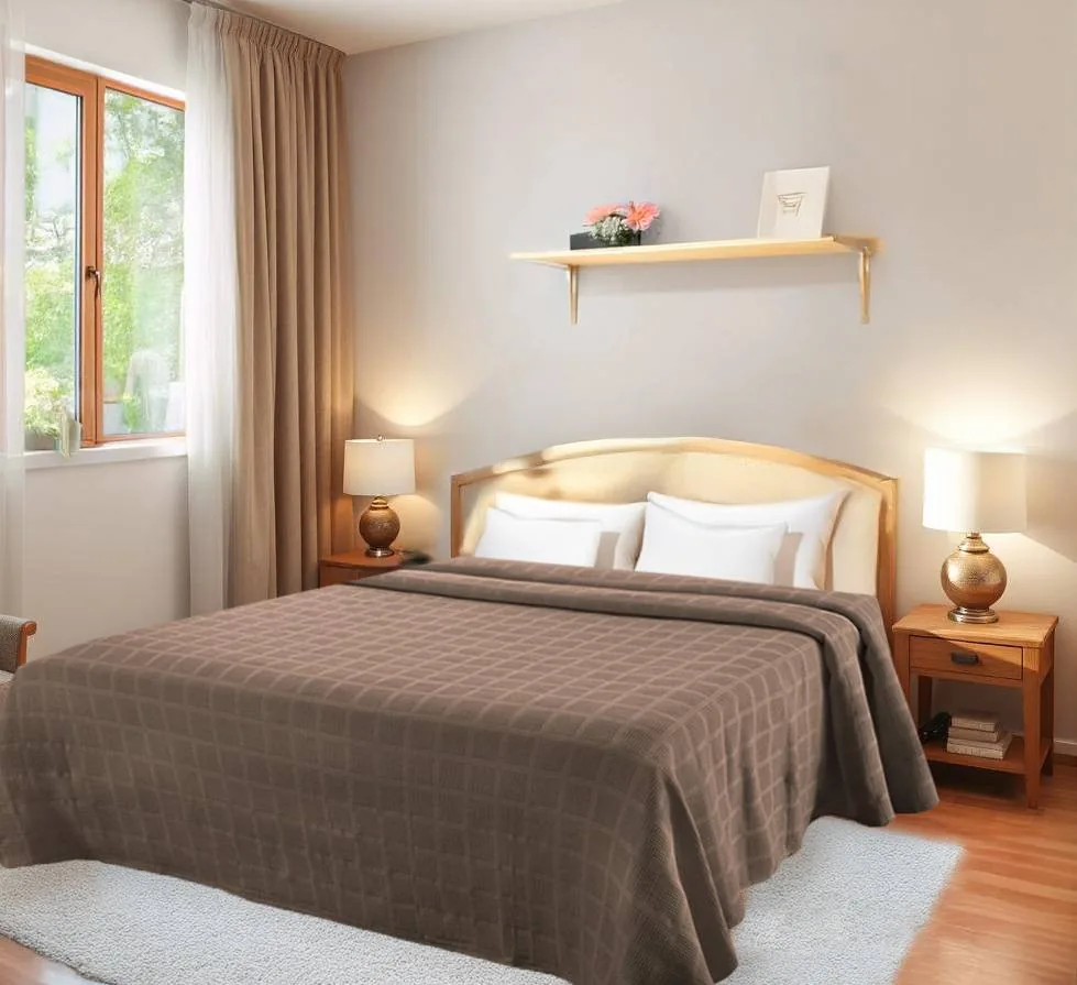 Renueva tus espacios con colcha domino sin fleco doble, textil y accesorio de calidad.