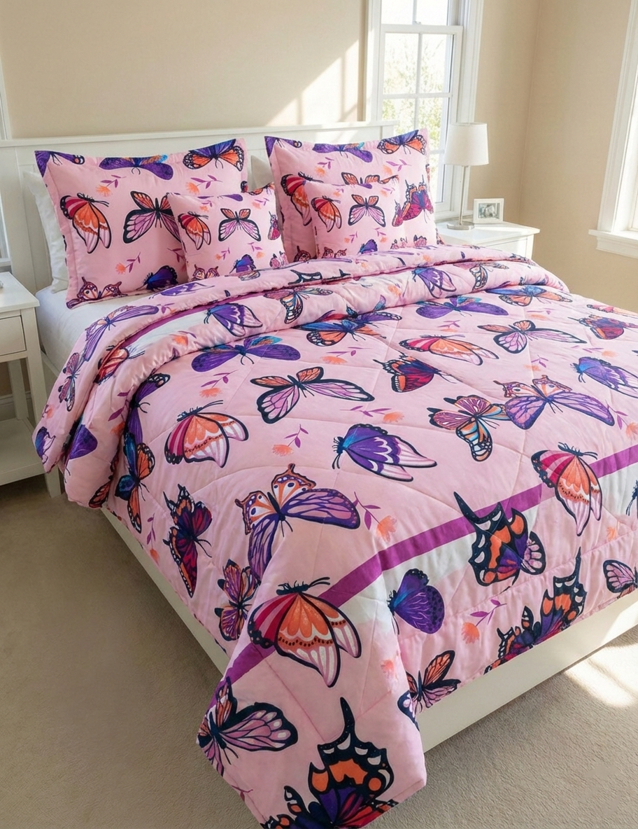 Lencería de cama fabricada con materiales premium, suaves al tacto y resistentes al uso frecuente.