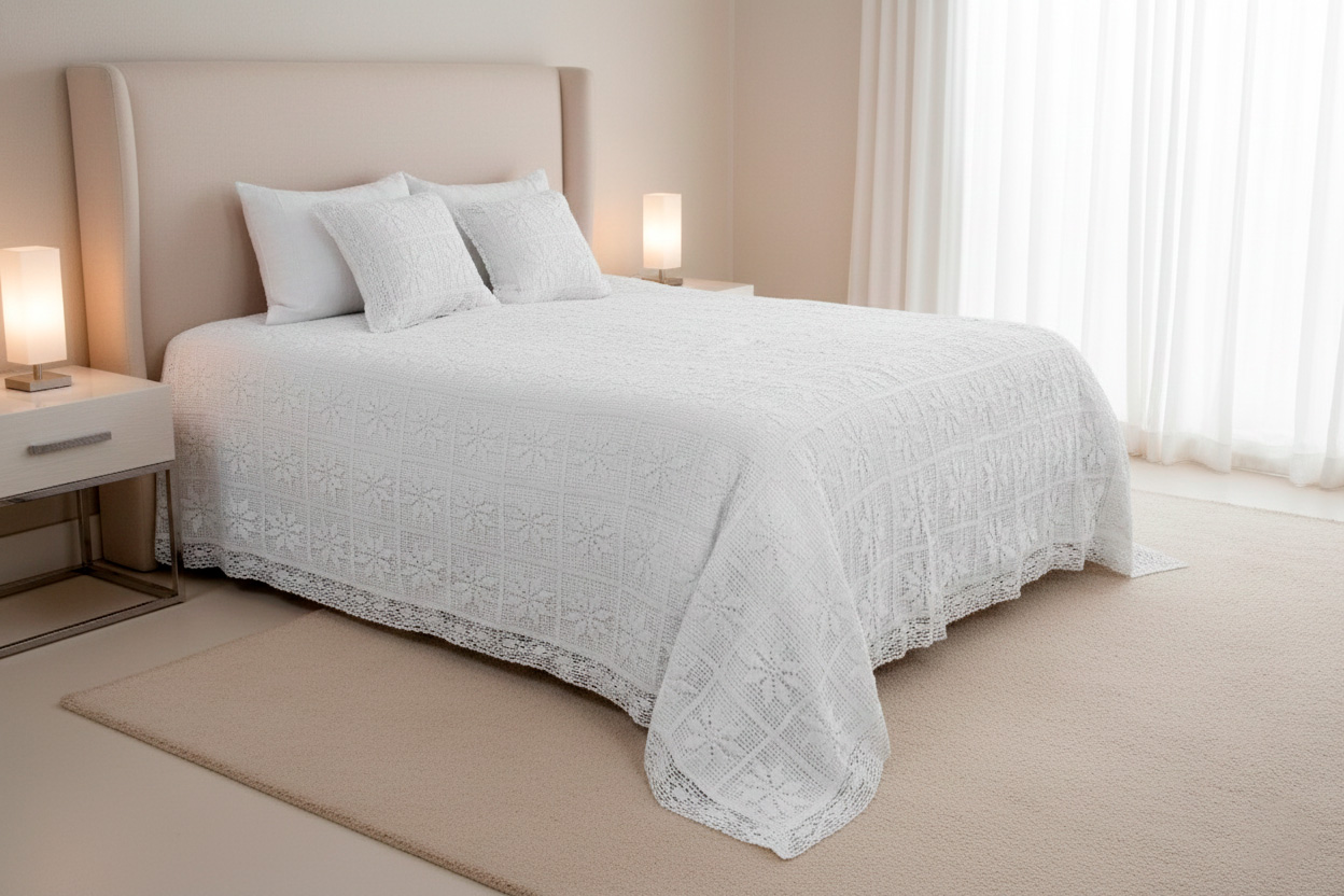 Renueva tu habitación con tendido de cama croché doble, diseño moderno y calidad superior.