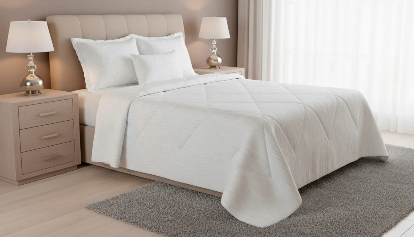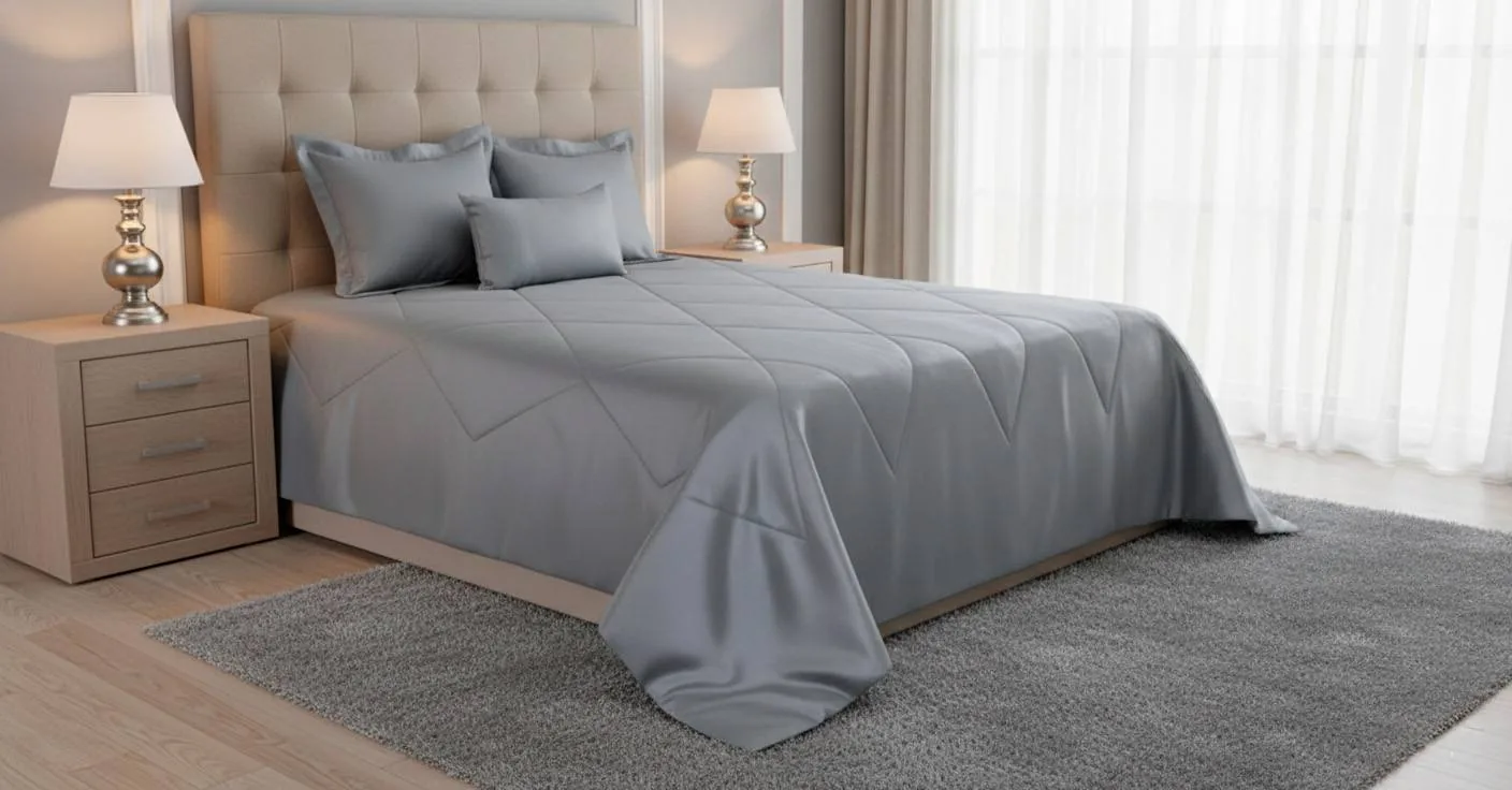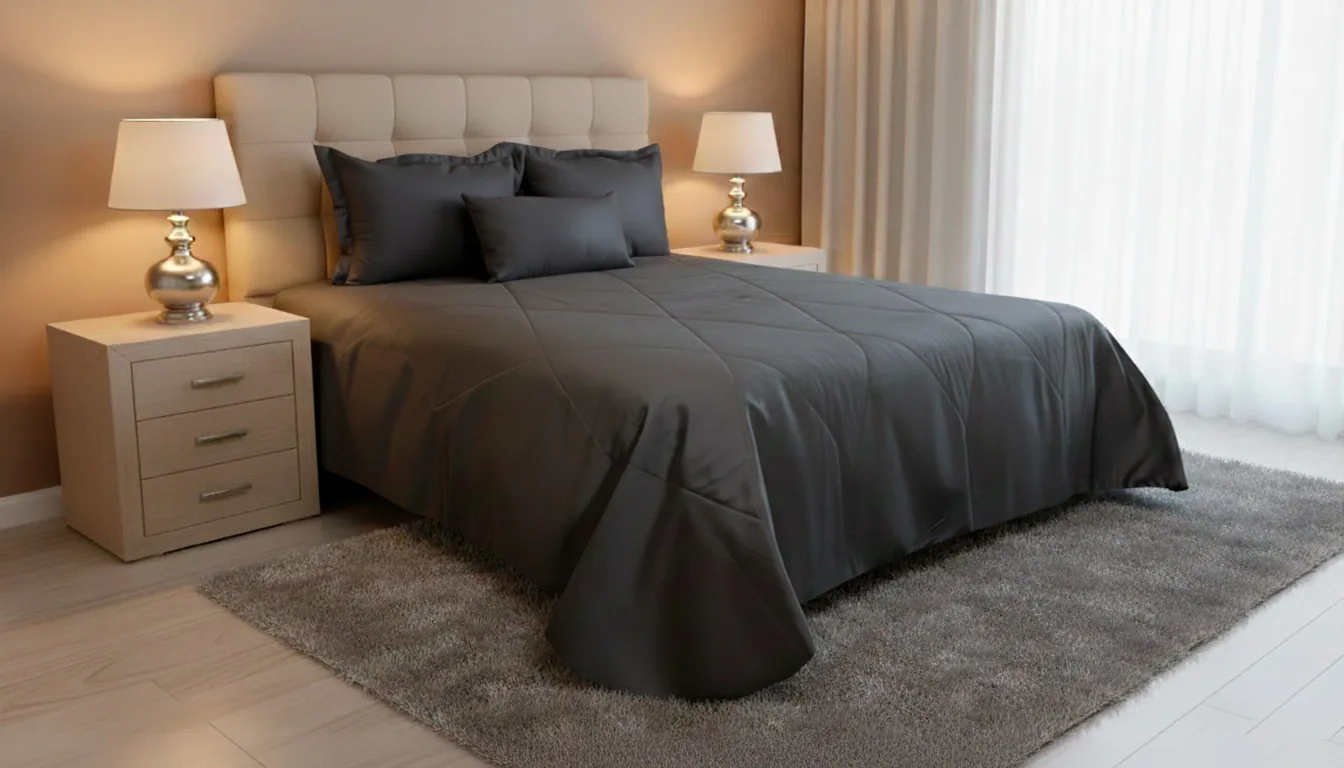 Lencería de cama fabricada con materiales premium, suaves al tacto y resistentes al uso frecuente.