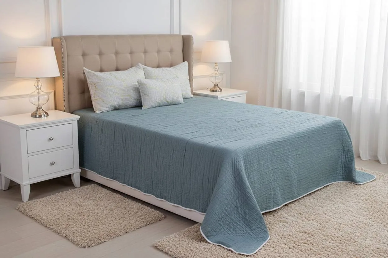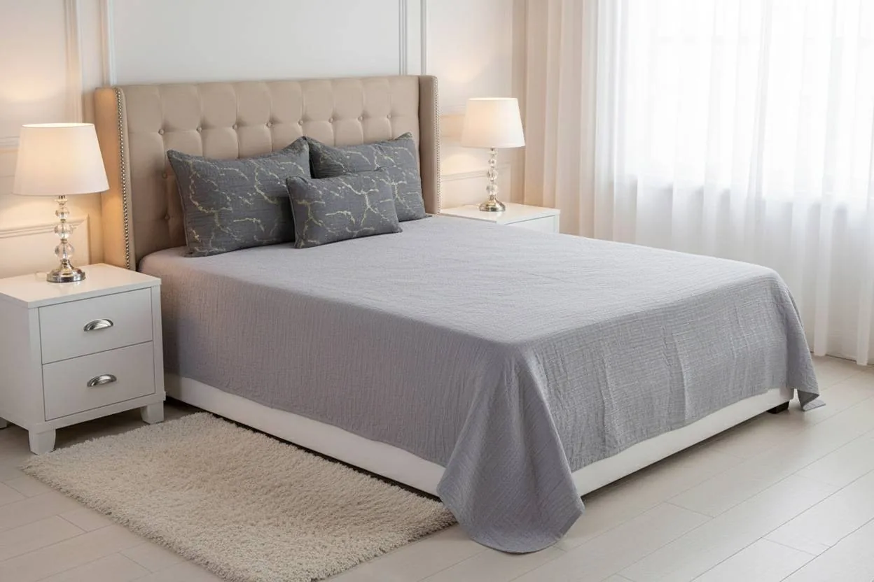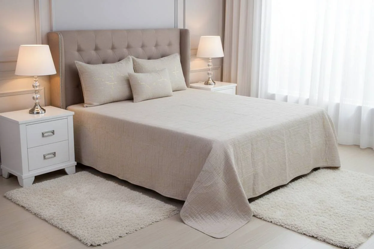 Lencería de cama fabricada con materiales premium, suaves al tacto y resistentes al uso frecuente.