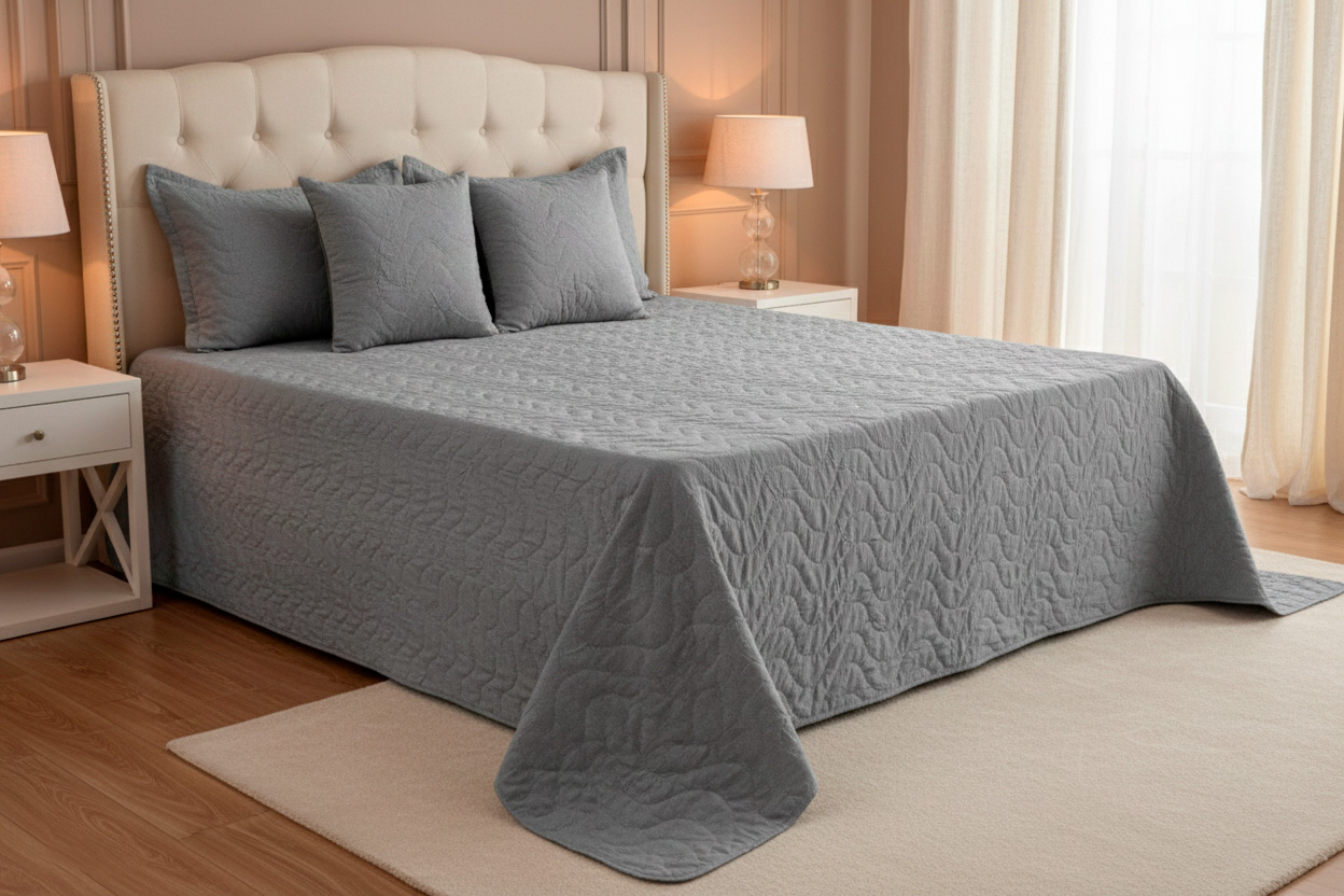Lencería de cama fabricada con materiales premium, suaves al tacto y resistentes al uso frecuente.