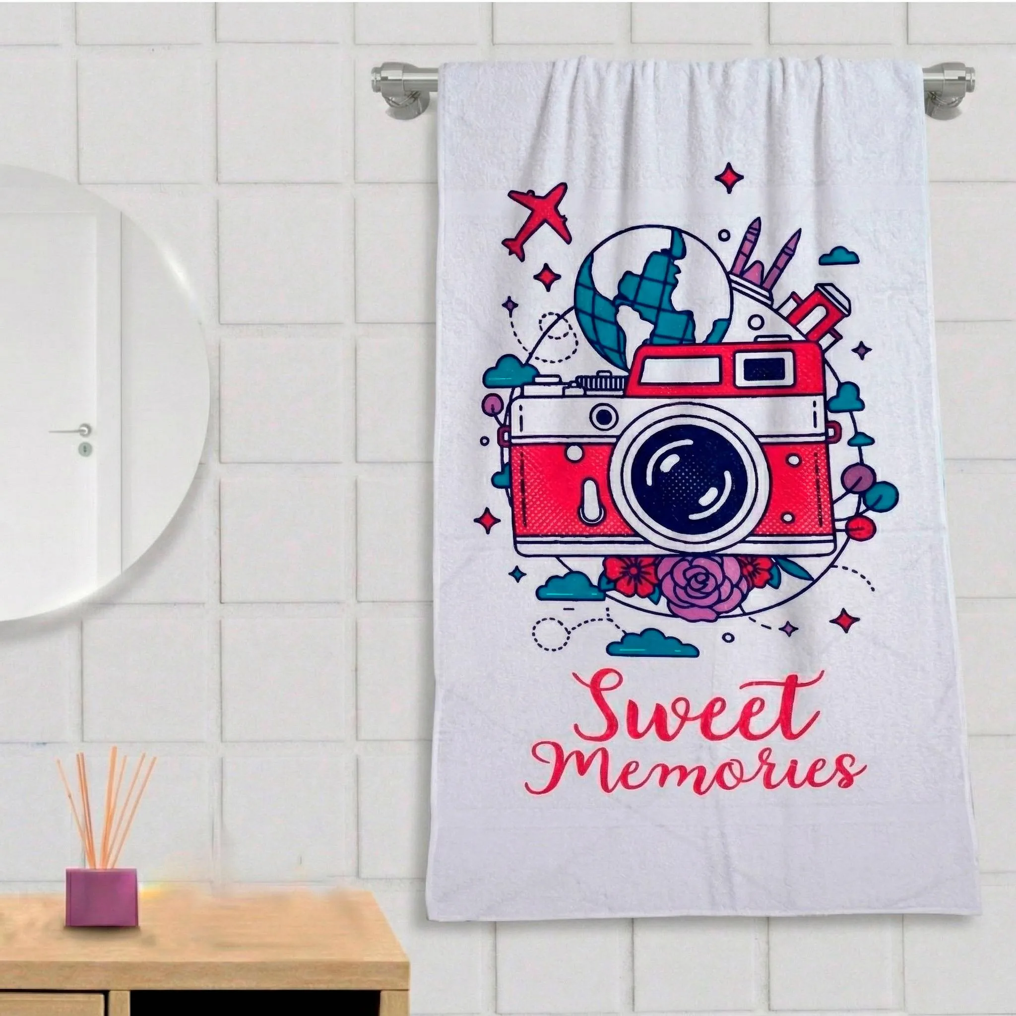 Secado rápido y suavidad con toalla de cuerpo estampada protela 90cmx180cm, producto de alta absorción para tu baño.