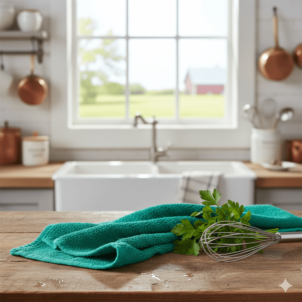 Paño de cocina con alta absorción, resistente y de secado rápido.