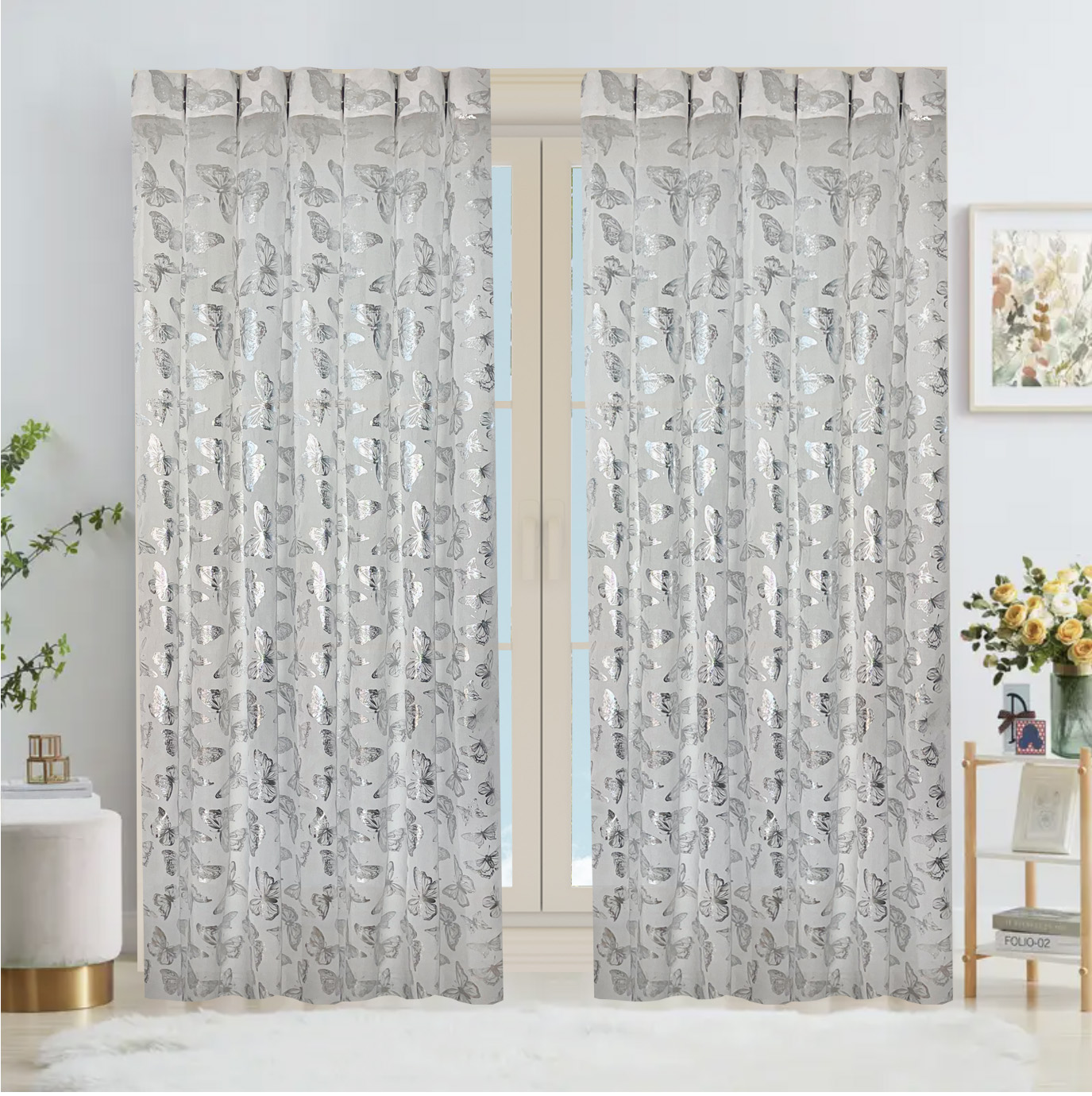 Juego de cortinas-material: poliéster 2 paneles, cuenta con sistema de aro metálico.
