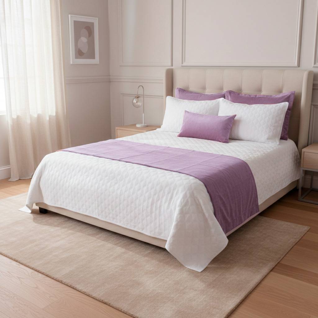 Juego de pashmina estándar X 4 piezas incluye: 1 pie de cama de 220cm de ancho X 60cm de largo + 2 fundas para almohadas de 50cm X 70cm + 1 funda para cojín riñonera de 35cm X 60cm rojo azul oscuro morado.