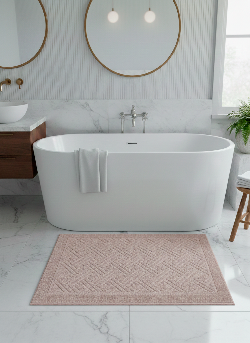 100% Algodón Suave y Absorbente Agrega comodidad y estilo a tu baño con el tapete Leiry. Confeccionado en 100% algodón, ofrece una textura suave al tacto y excelente capacidad de absorción, manteniendo tus pies secos y confortables. Su diseño práctico y elegante combina con cualquier decoración y su medida de 50 cm x 80 cm lo hace ideal para cualquier espacio. Medidas: 50 cm x 80 cm Material: 100% algodón Características: Suave, absorbente, cómodo y duradero
