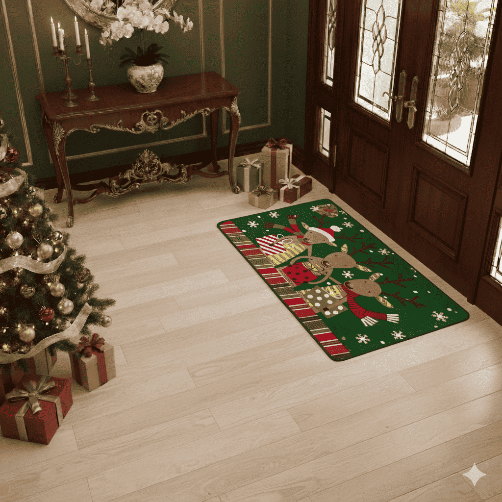 Tapete Navideño 48 cm x 78 cm – Ideal para dar un toque festivo a la entrada de tu hogar o cualquier espacio. Elaborado en poliéster, con diseño navideño atractivo. Se despacha según disponibilidad de diseños, práctico, decorativo y fácil de mantener.