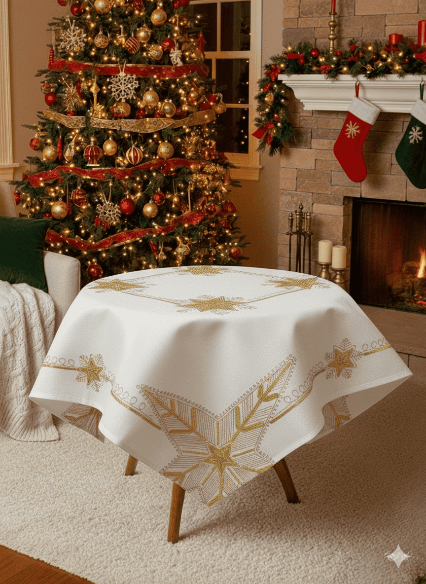 Decora tu mesa con la Carpeta Navideña Estrella, diseñada para aportar un toque festivo y elegante a tus espacios. Su diseño inspirado en la magia de la Navidad llena cada rincón de calidez y estilo. Confeccionada en poliéster resistente, mide 85 x 85 cm y tiene forma cuadrada, ideal para realzar tus cenas y celebraciones navideñas.