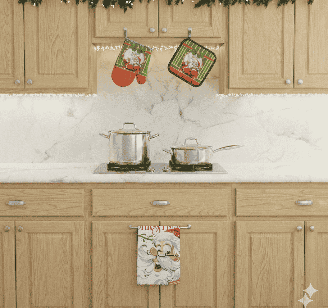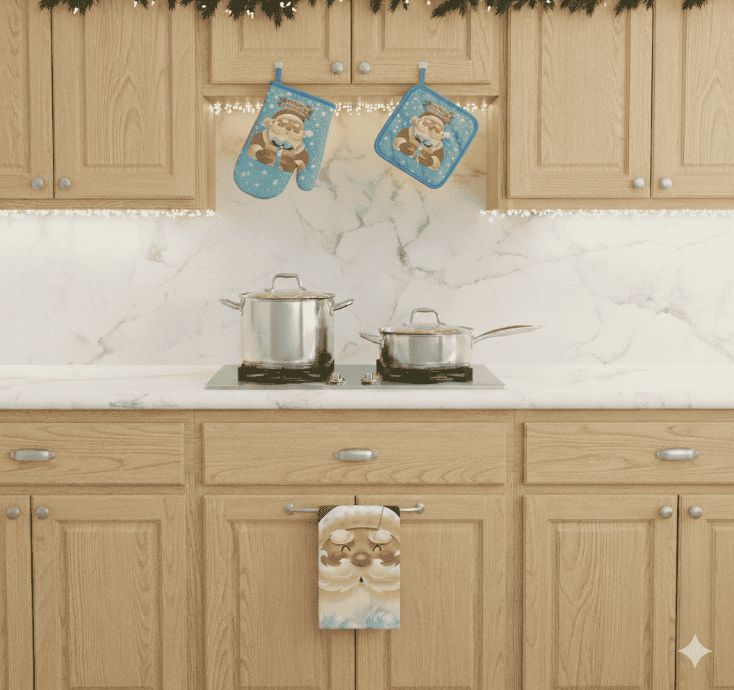 Set Navideño de Cocina – 3 Piezas Dale un toque festivo a tu cocina con este encantador Set Navideño, perfecto para la temporada. Elaborado en poliéster de alta calidad, combina funcionalidad y estilo para acompañarte en tus preparaciones navideñas. Incluye: 1 guante térmico de 17 cm x 25 cm 1 sujetador/portaplatos de 17 cm x 17 cm 1 limpión de 40 cm x 60 cm Su diseño temático navideño aporta calidez y alegría al espacio, mientras que sus materiales resistentes garantizan comodidad y seguridad al cocinar. Ideal para uso diario o como un detalle perfecto para regalar.