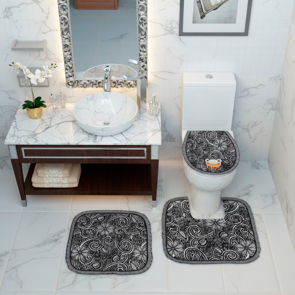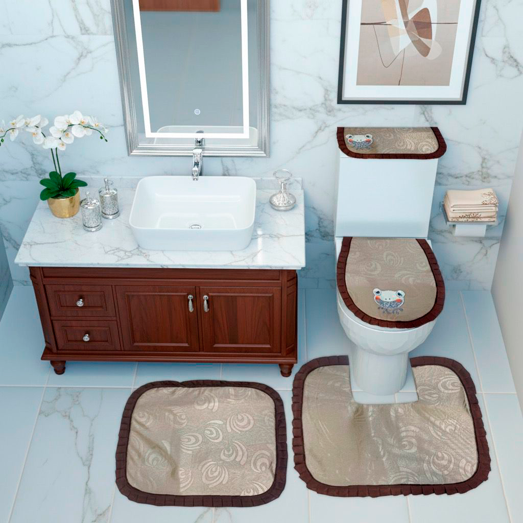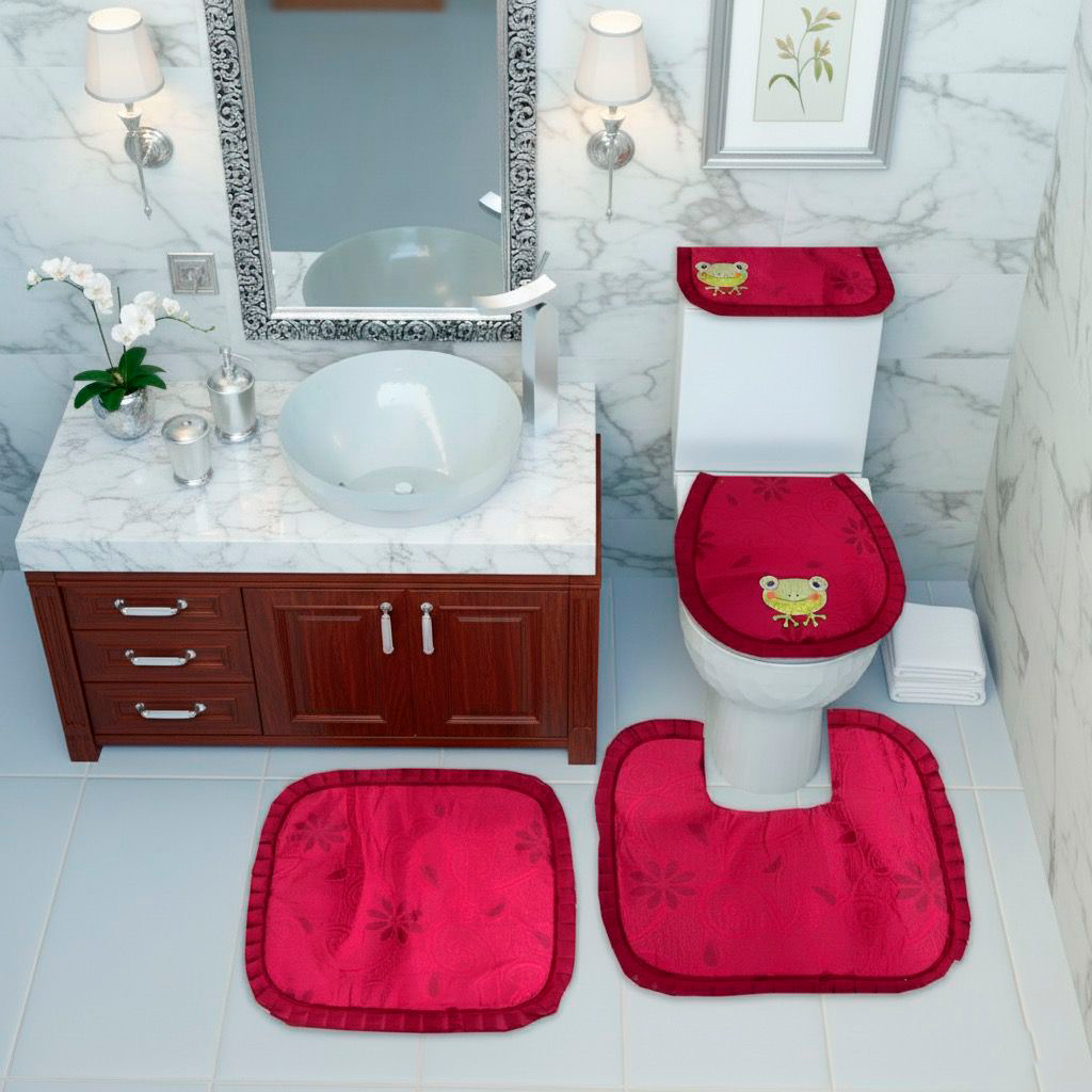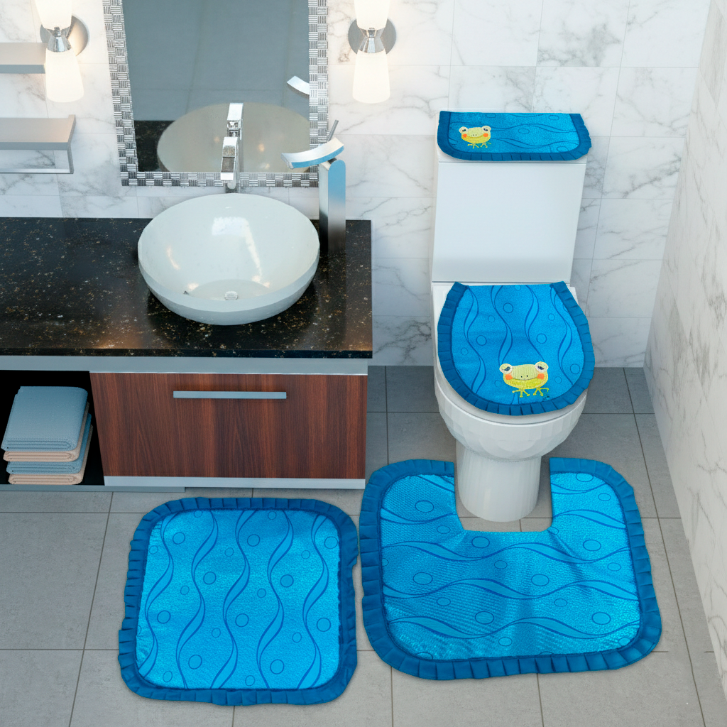 Juego de baño por 4 piezas eincluye: forros tapa cisterna, forro tapa bizcocho, tapete entrada Y tapete taza.