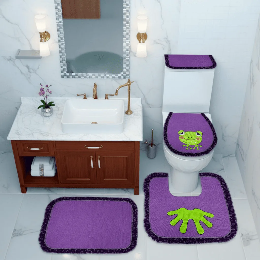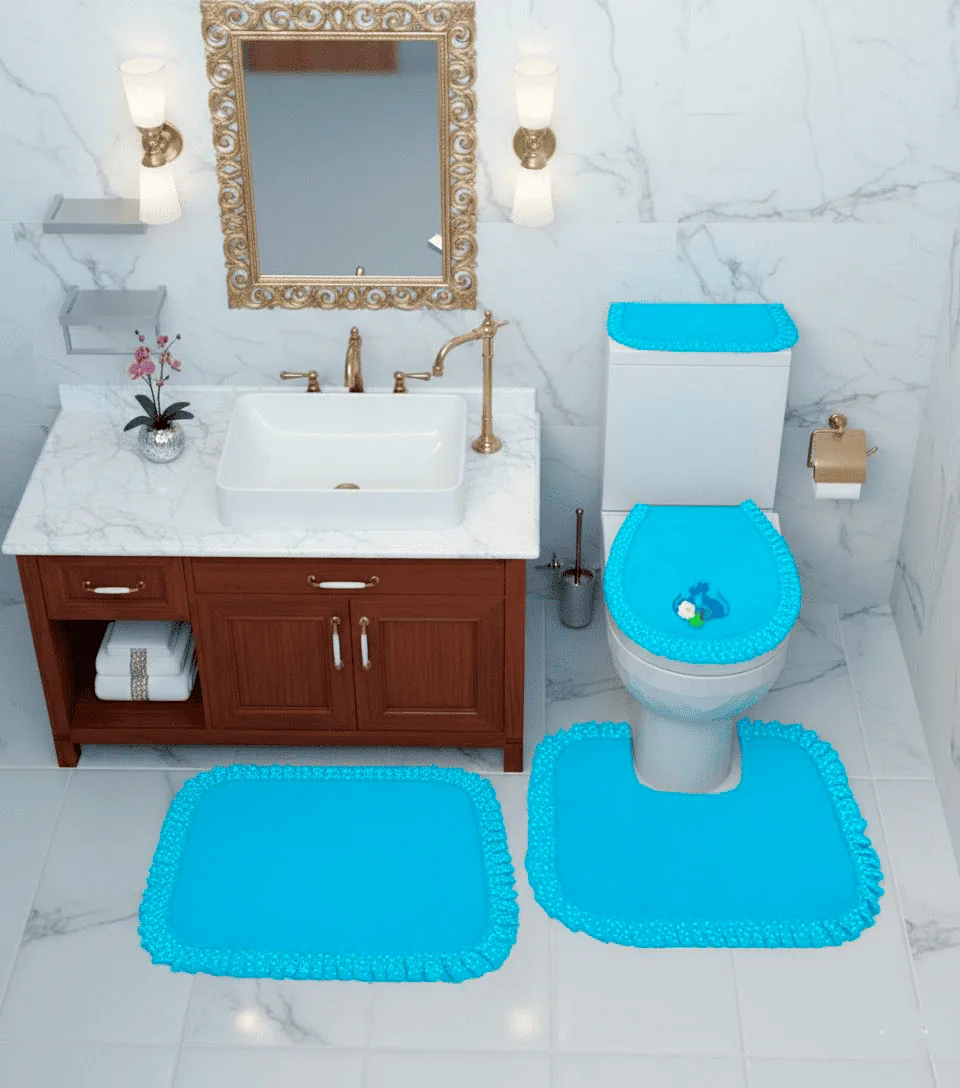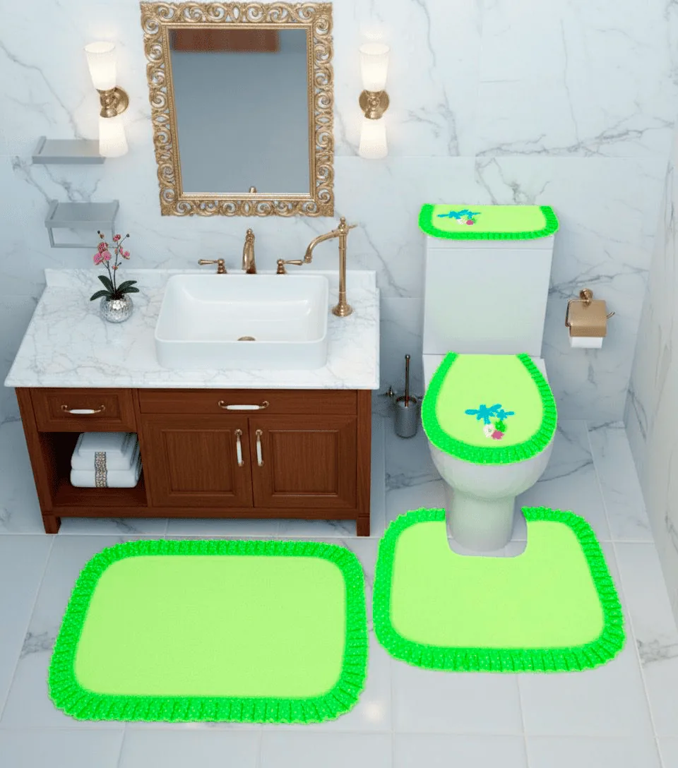 Juego de baño por 4 piezas en tela toalla incluye: forros tapa cisterna, forro tapa bizcocho, tapete entrada.