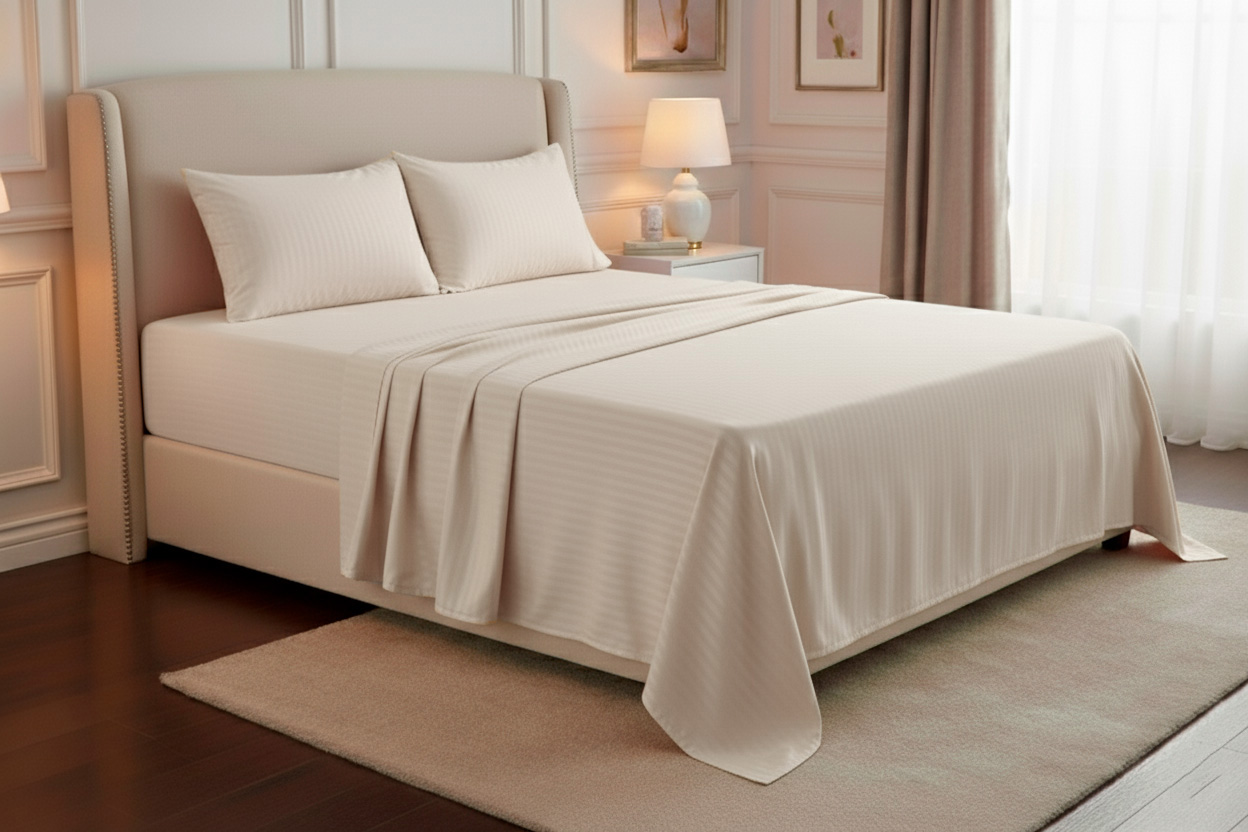 Lencería de cama fabricada con materiales premium, suaves al tacto y resistentes al uso frecuente.
