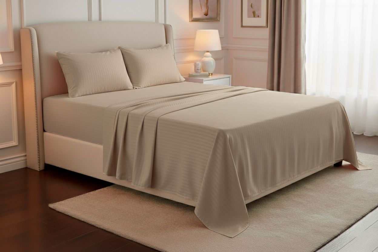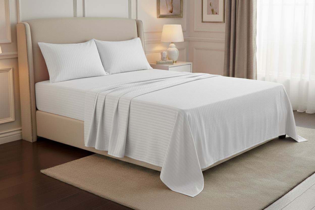 Lencería de cama fabricada con materiales premium, suaves al tacto y resistentes al uso frecuente.