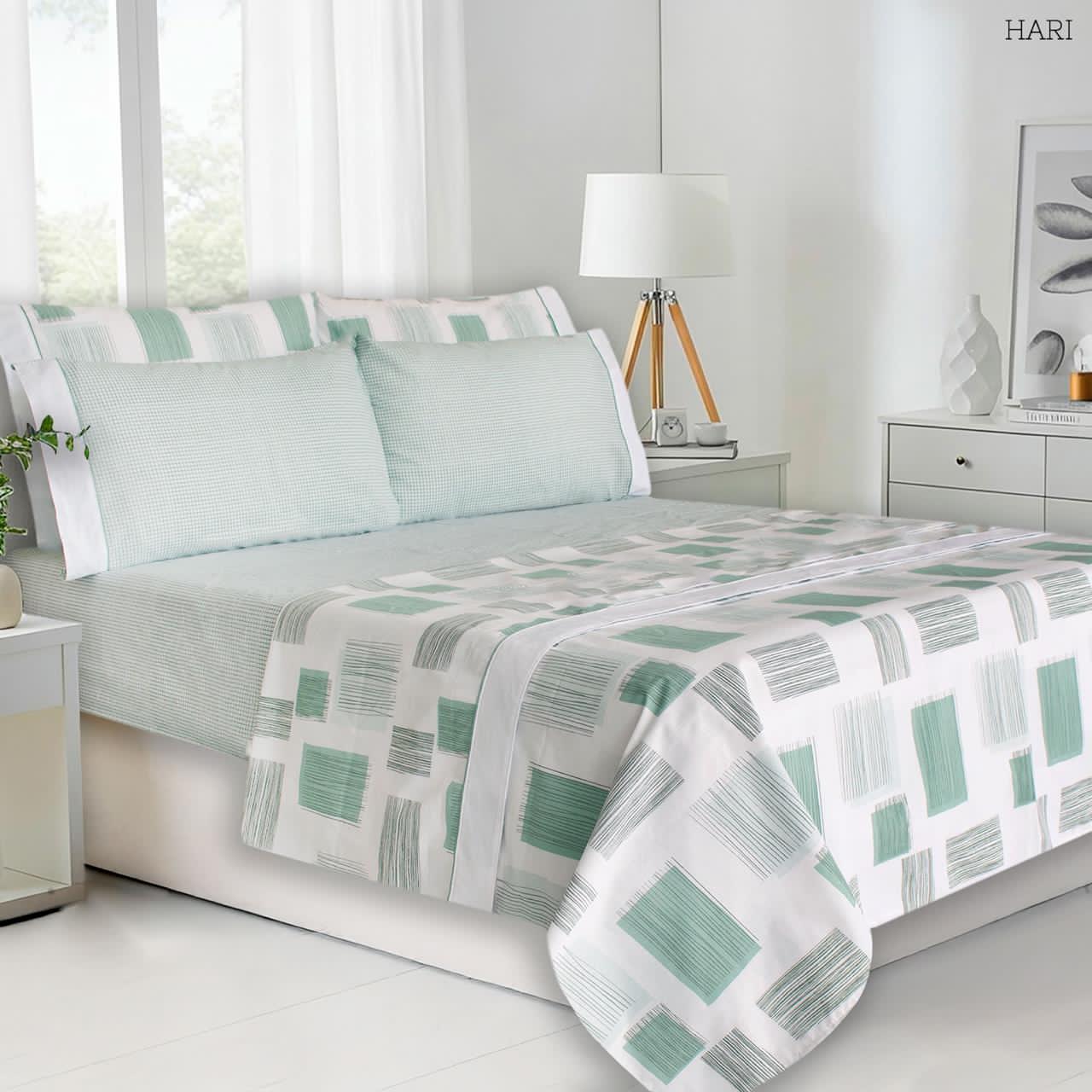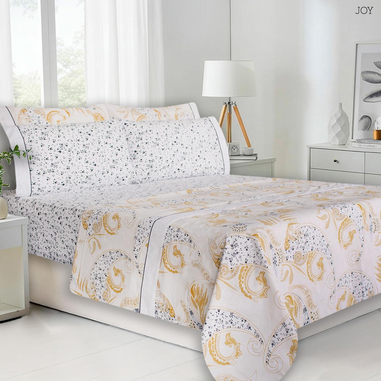 Medida: para cama de 160mtr incluye: 1 sobre sábana de 240cm X 245cm + 1 sábana ajustable de 160cm X 190cm - 30cm de cajón + 2 fundas para almohadas de 50cm X 75cm. Espik fildis joy yst hary.