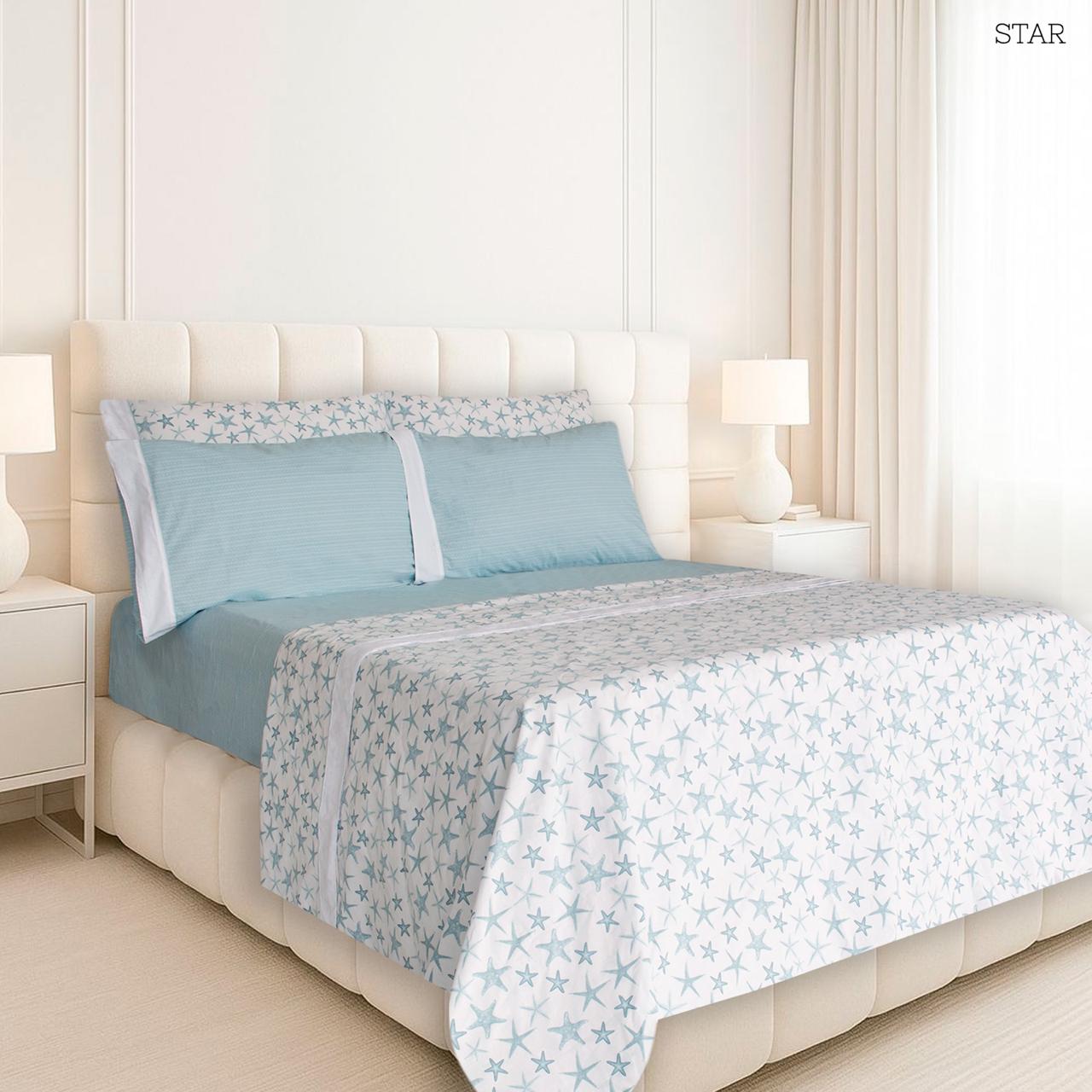 Medida: para cama de 2X2 MTR incluye: 1 sobre sábana de 230cm X 245cm + 1 sábana ajustable de 160cm X 190cm X 30cm de cajón + 2 fundas para almohadas de 50cm X 75cm. Dom flow gulu star zele.