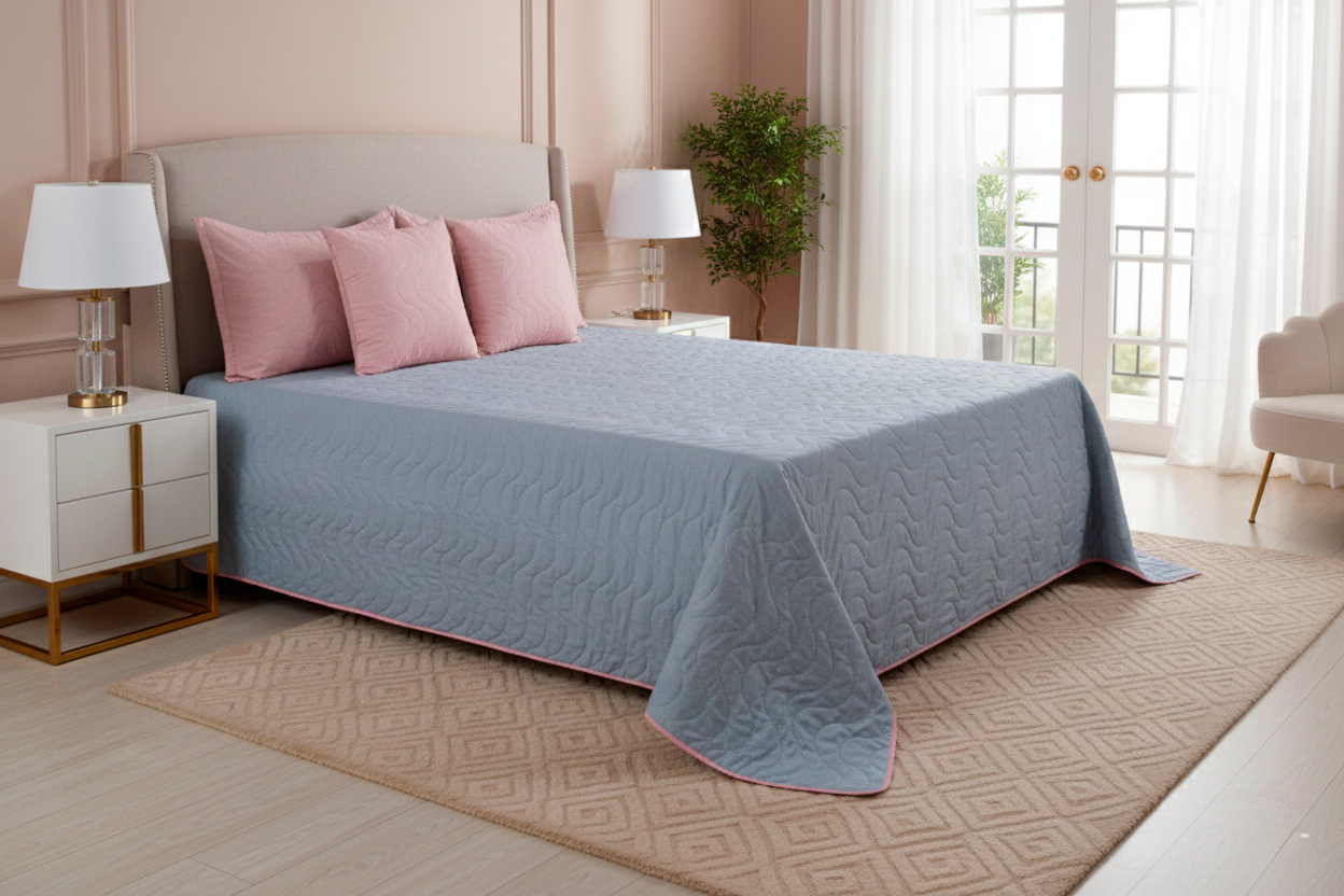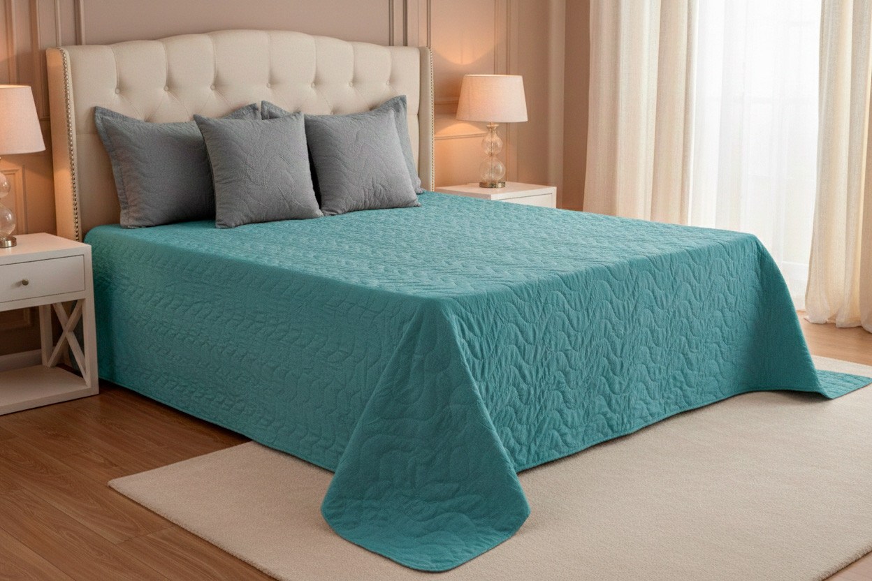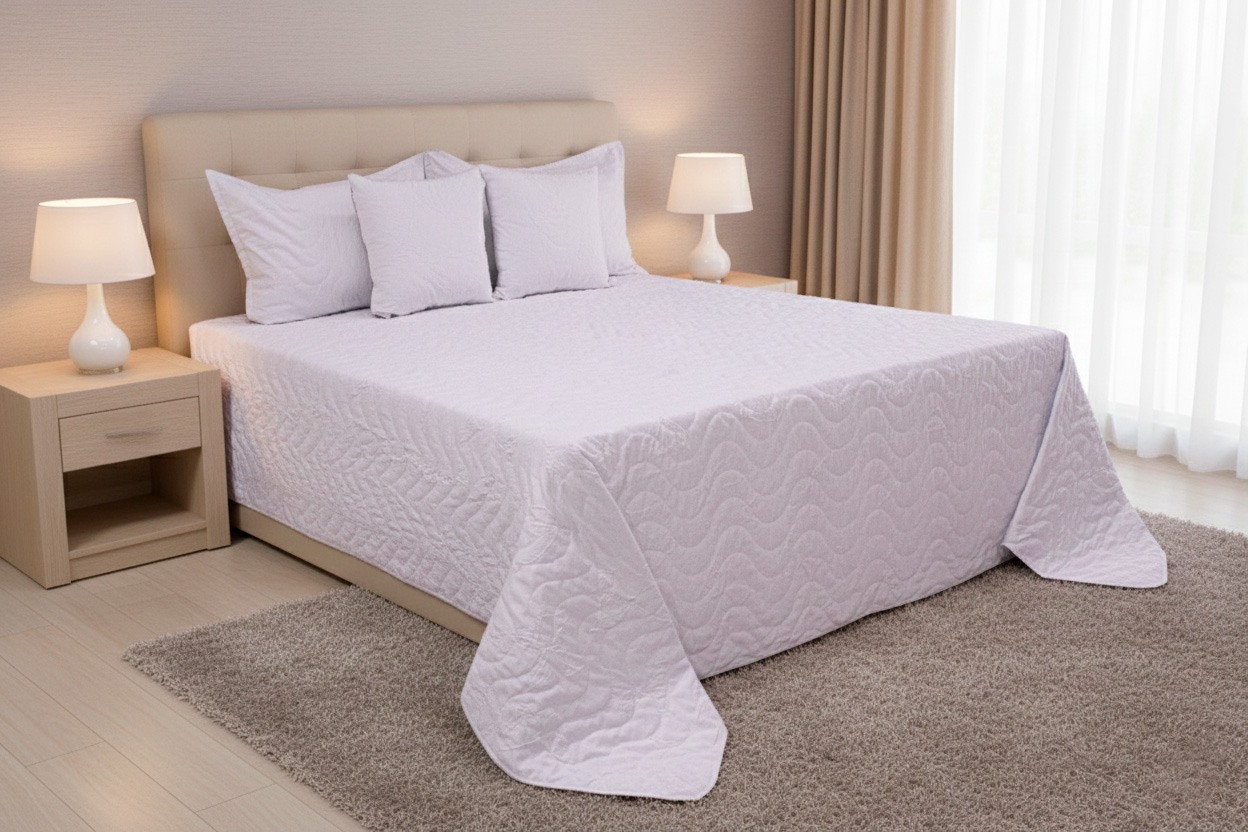 Lencería de cama fabricada con materiales premium, suaves al tacto y resistentes al uso frecuente.